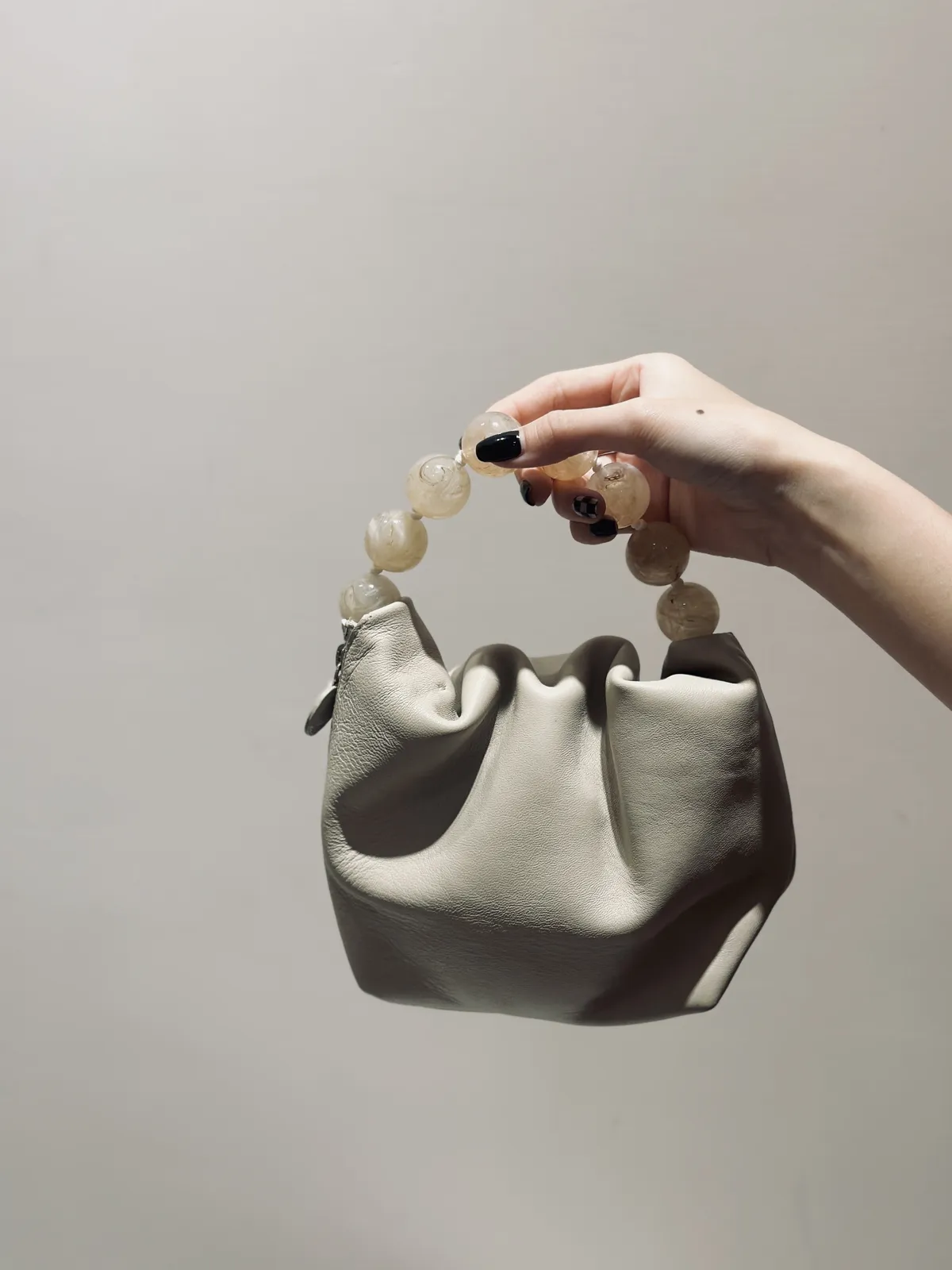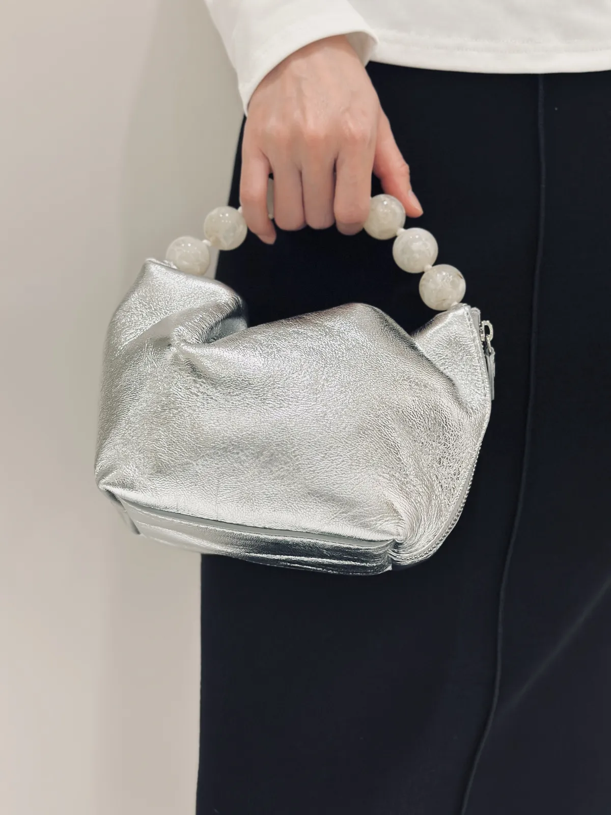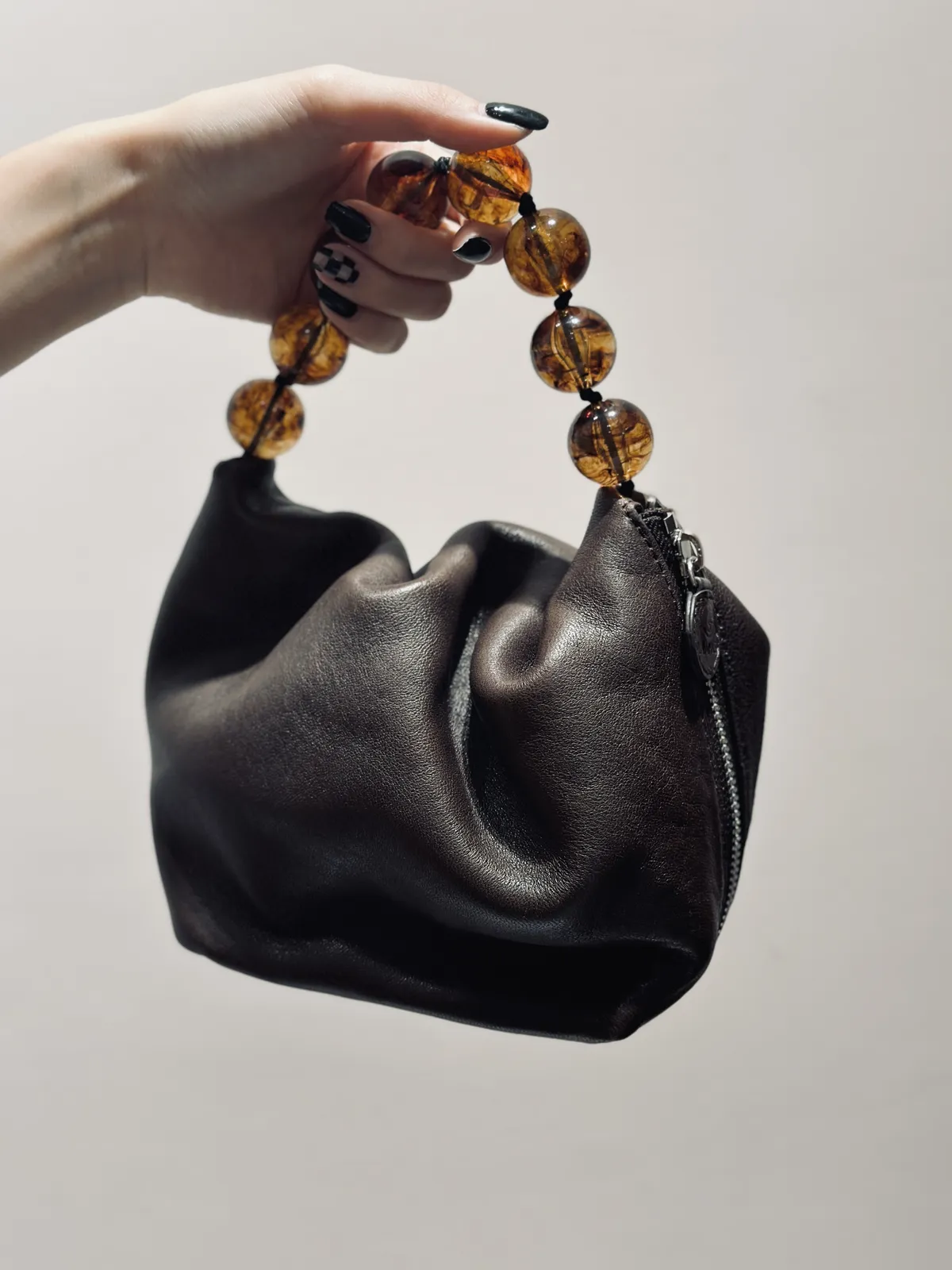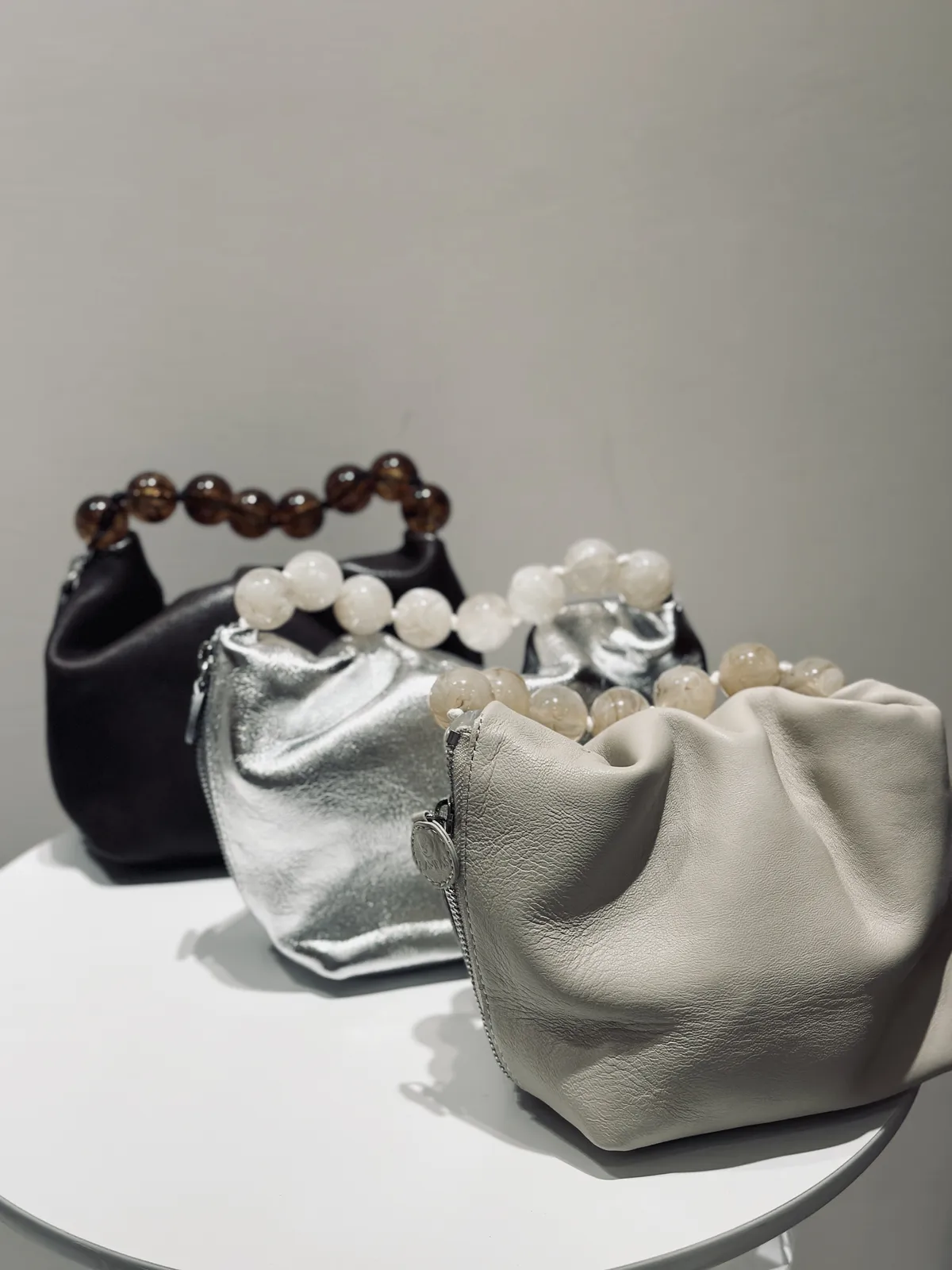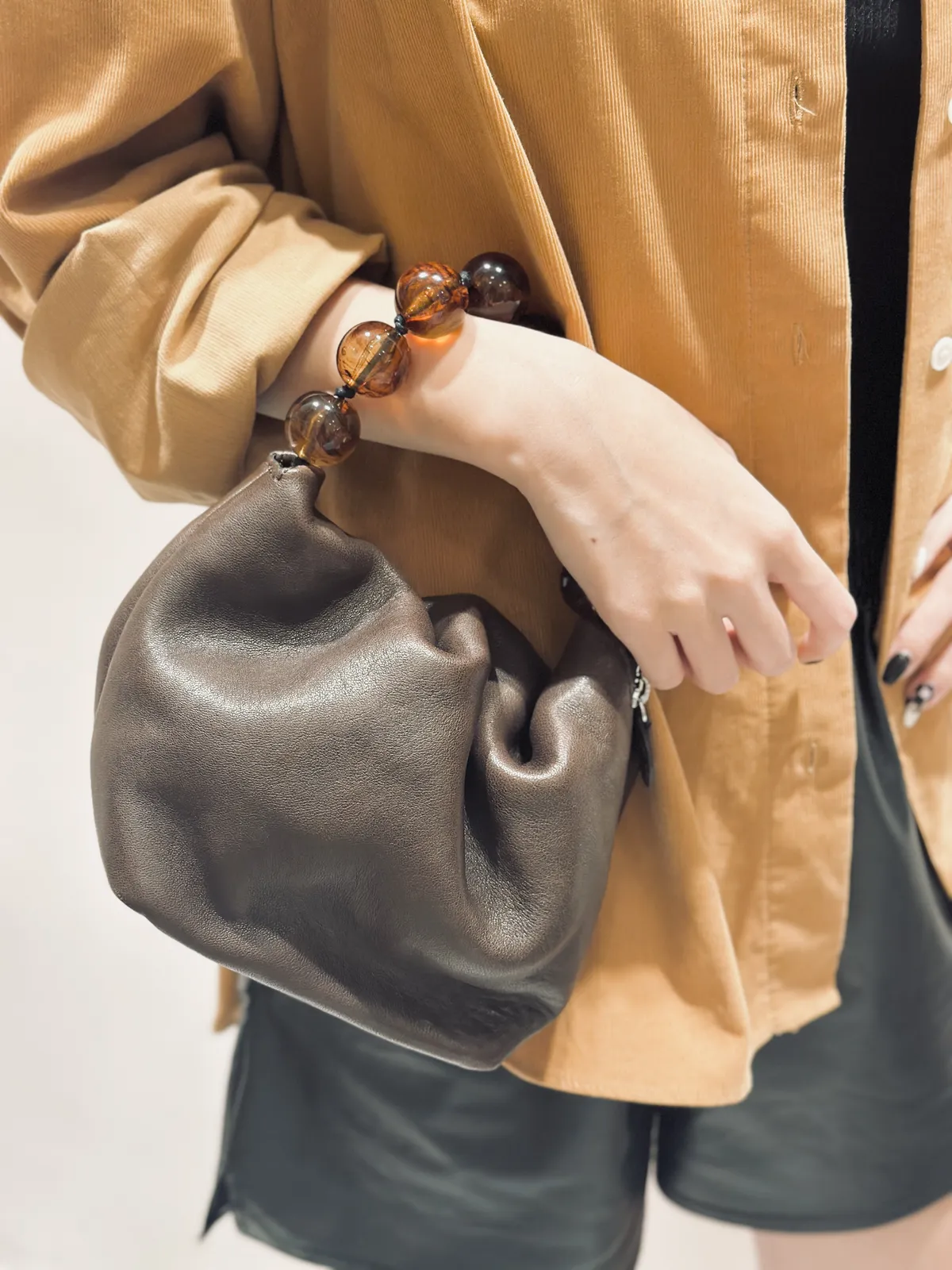 真羊皮琉璃珠珠手拿包