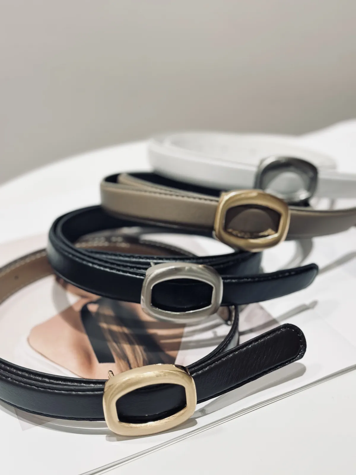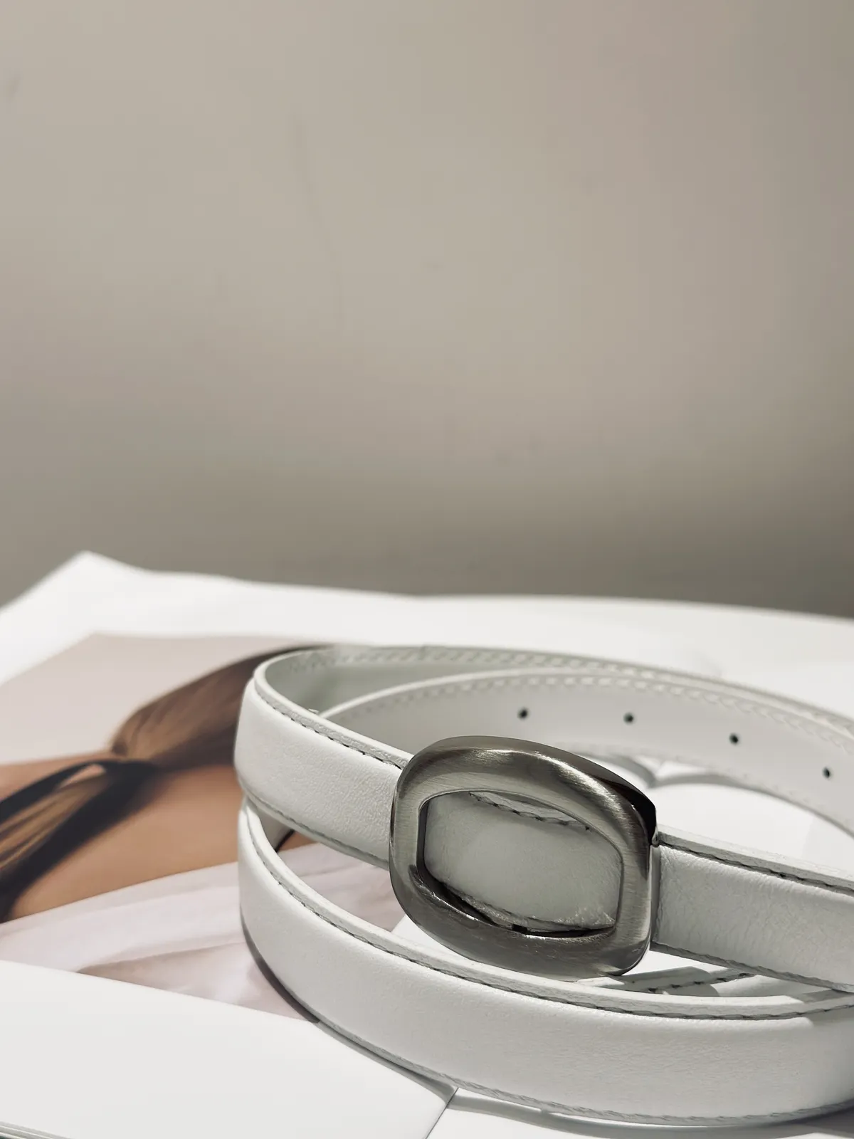 橢圓金屬無孔真皮細皮帶