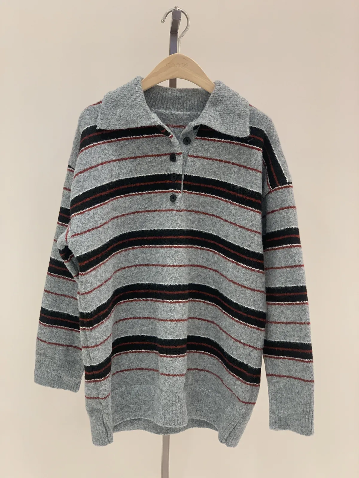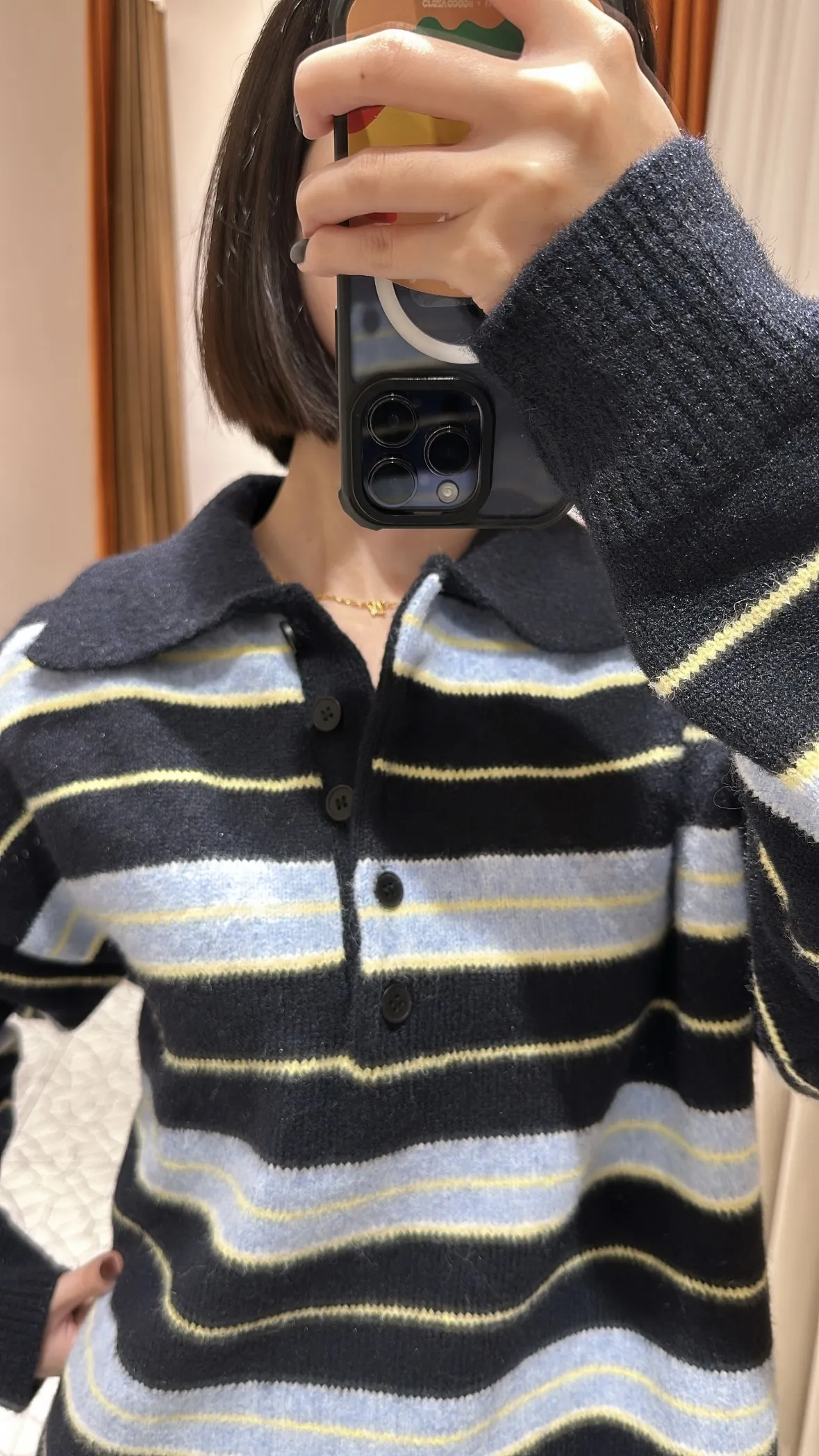 細節:polo領,撞色條紋設計