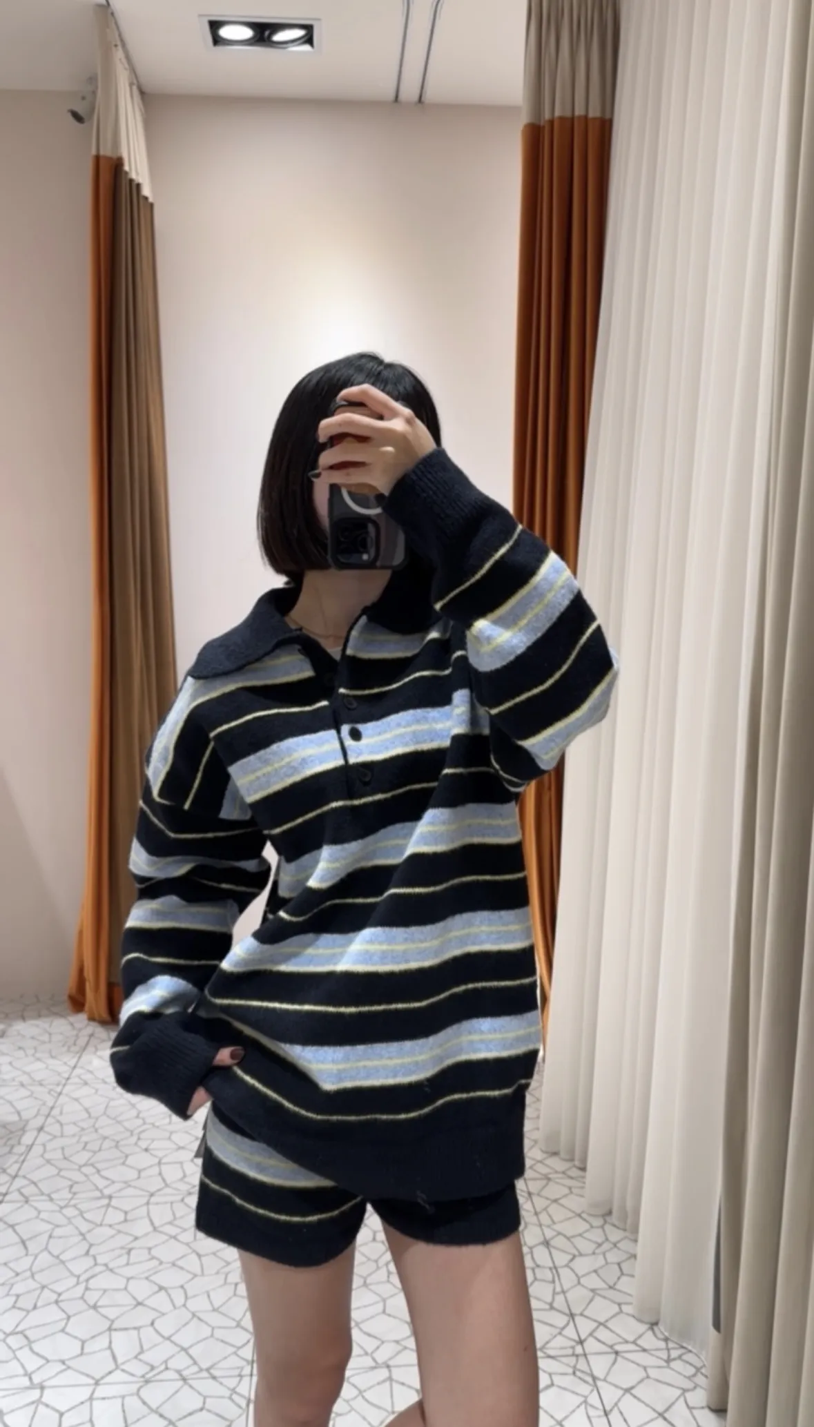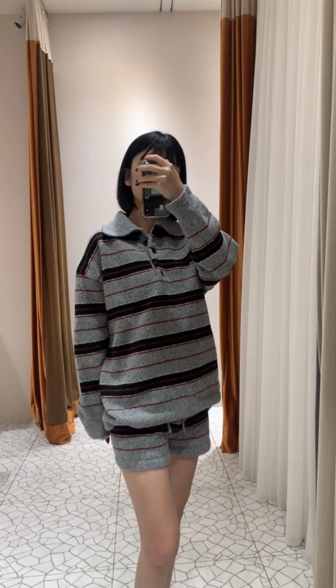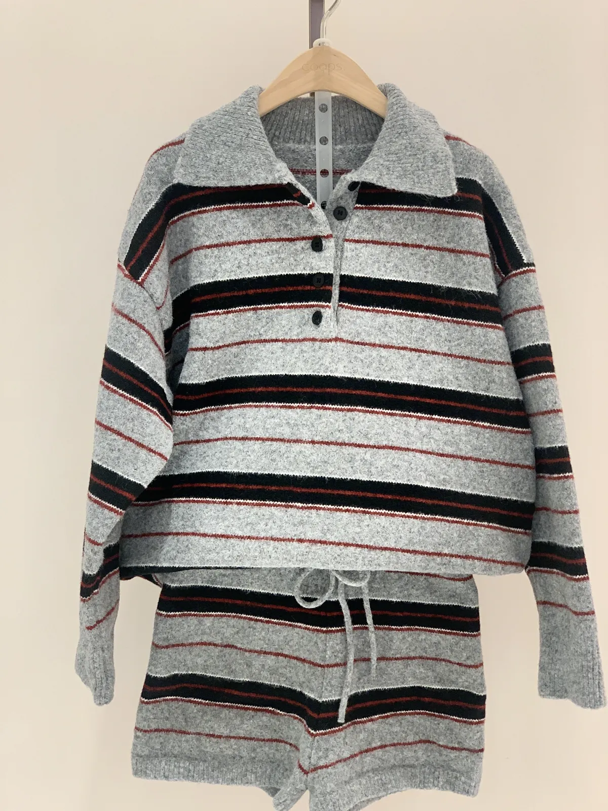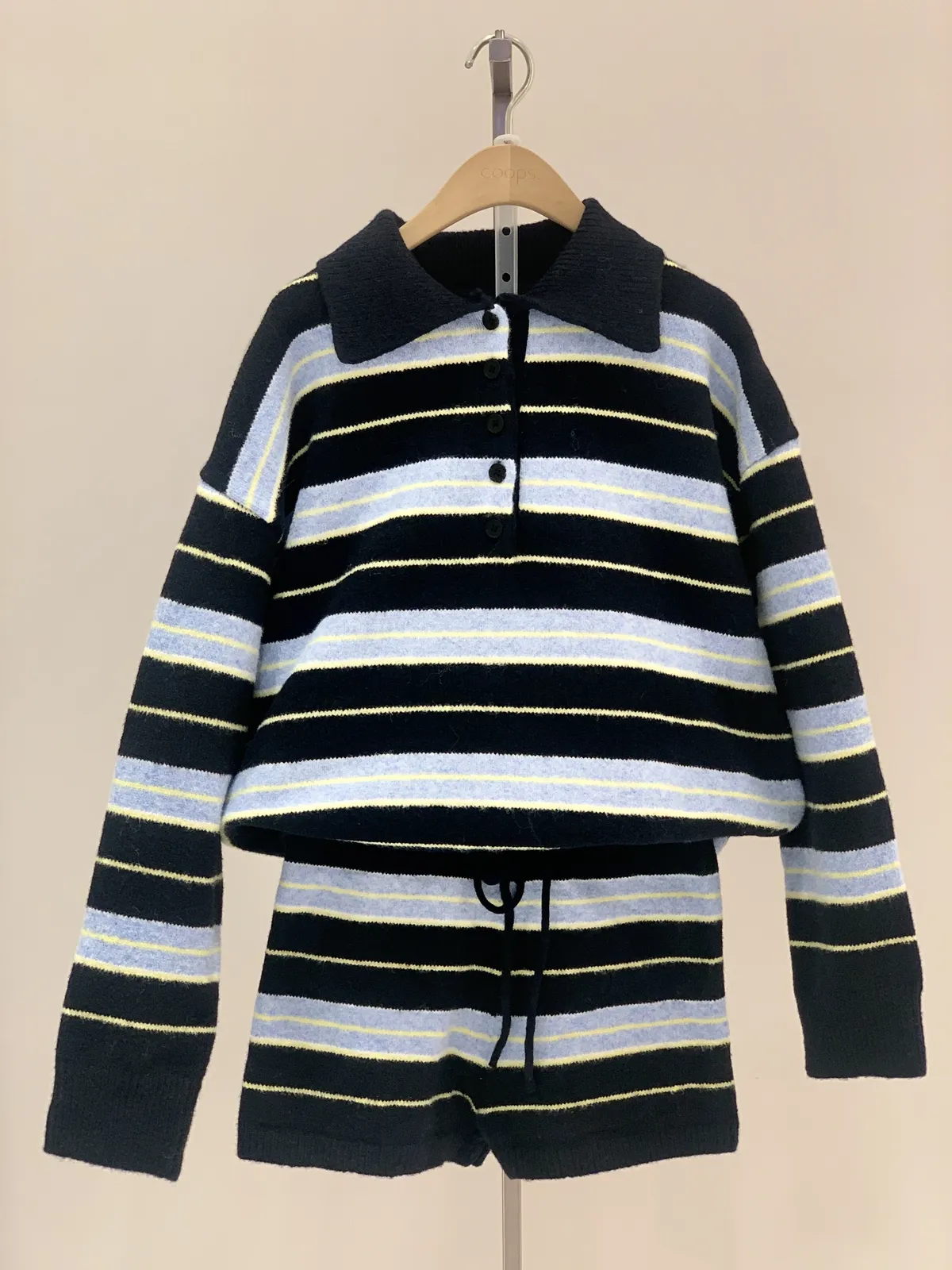 Polo領條紋毛衣短褲套裝