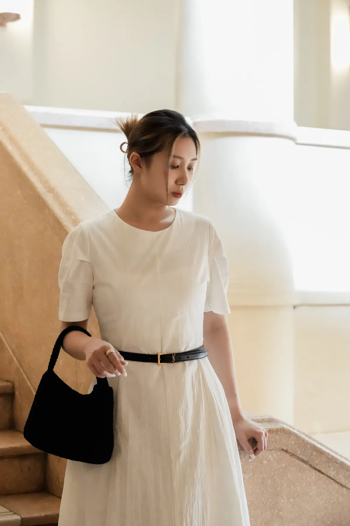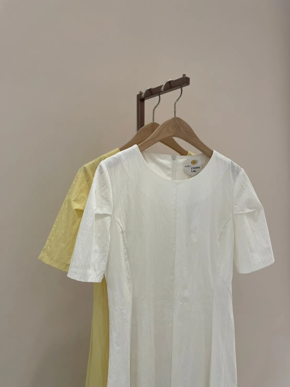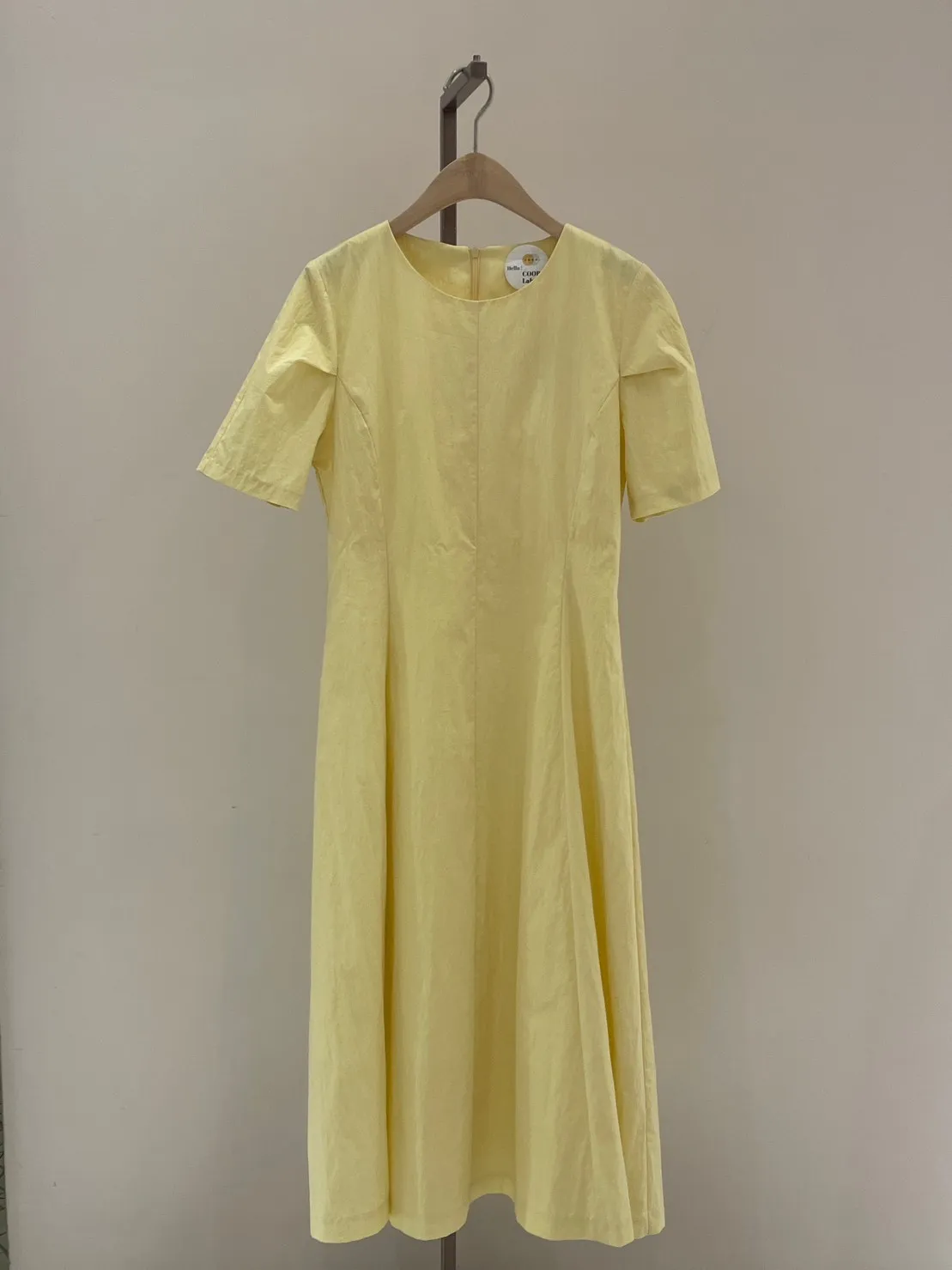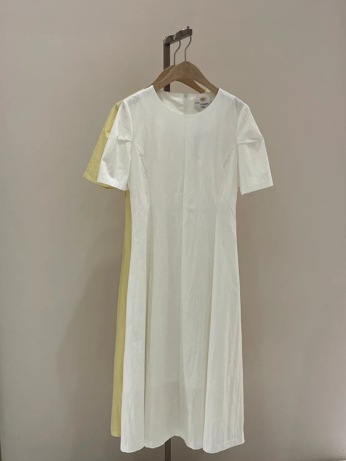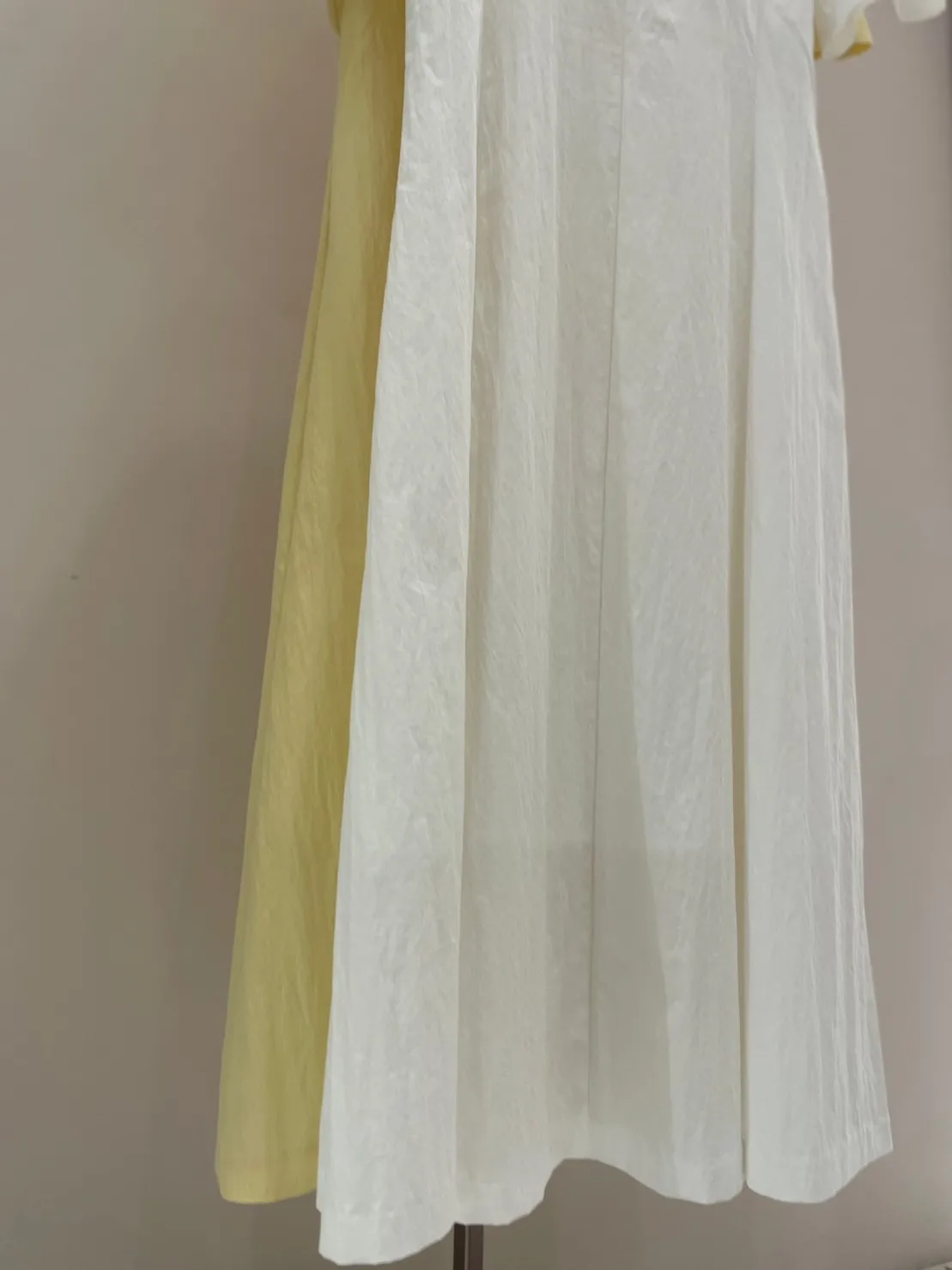 收腰剪裁傘擺長洋(白/黃)