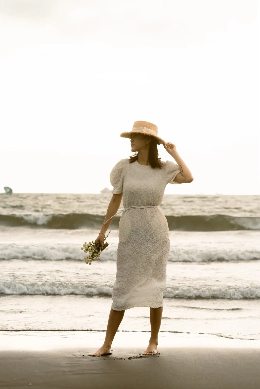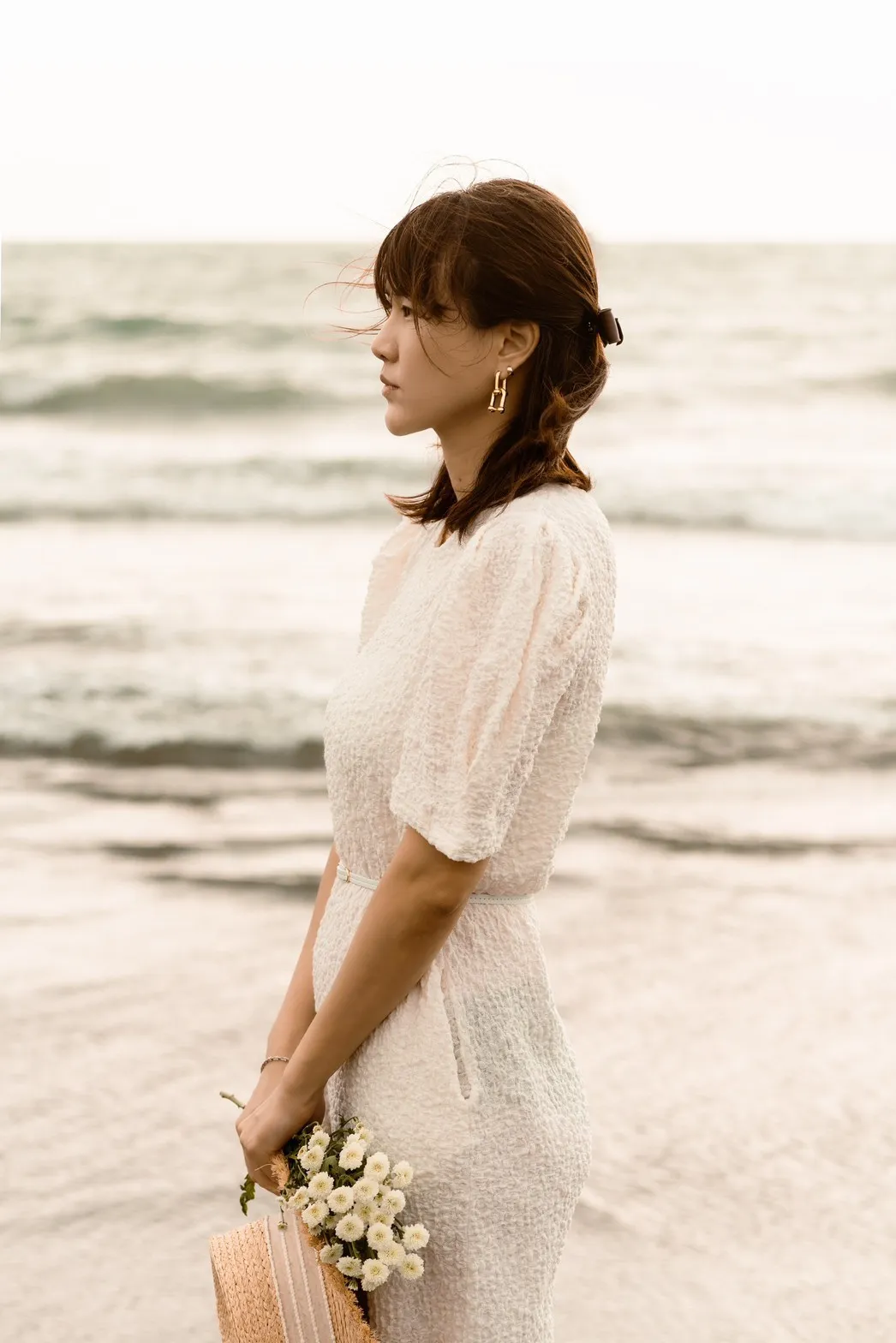 細節:小澎袖設計不浮誇/後開衩顯比例