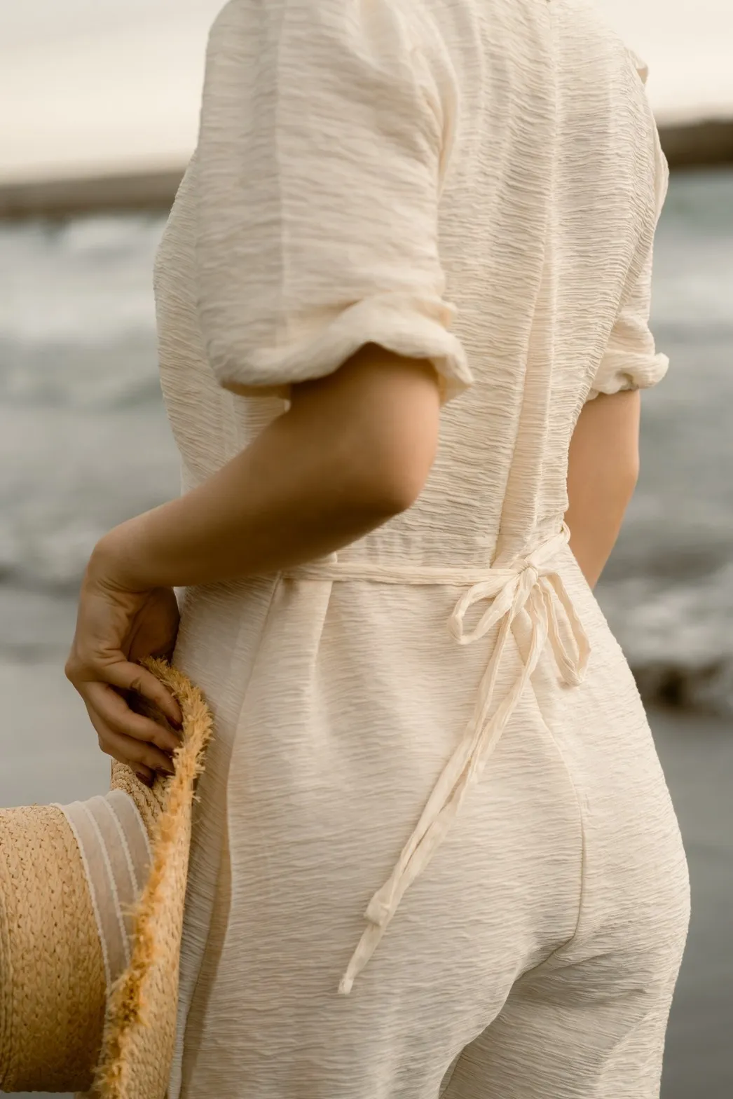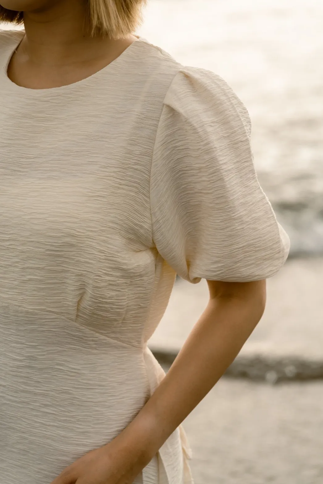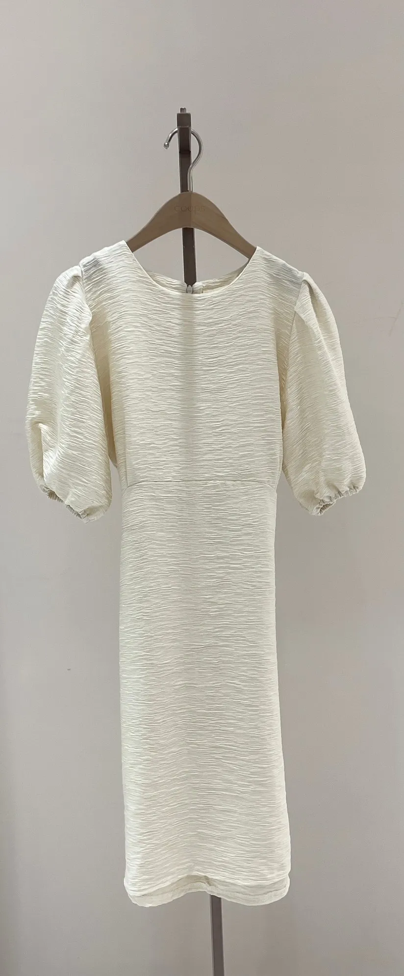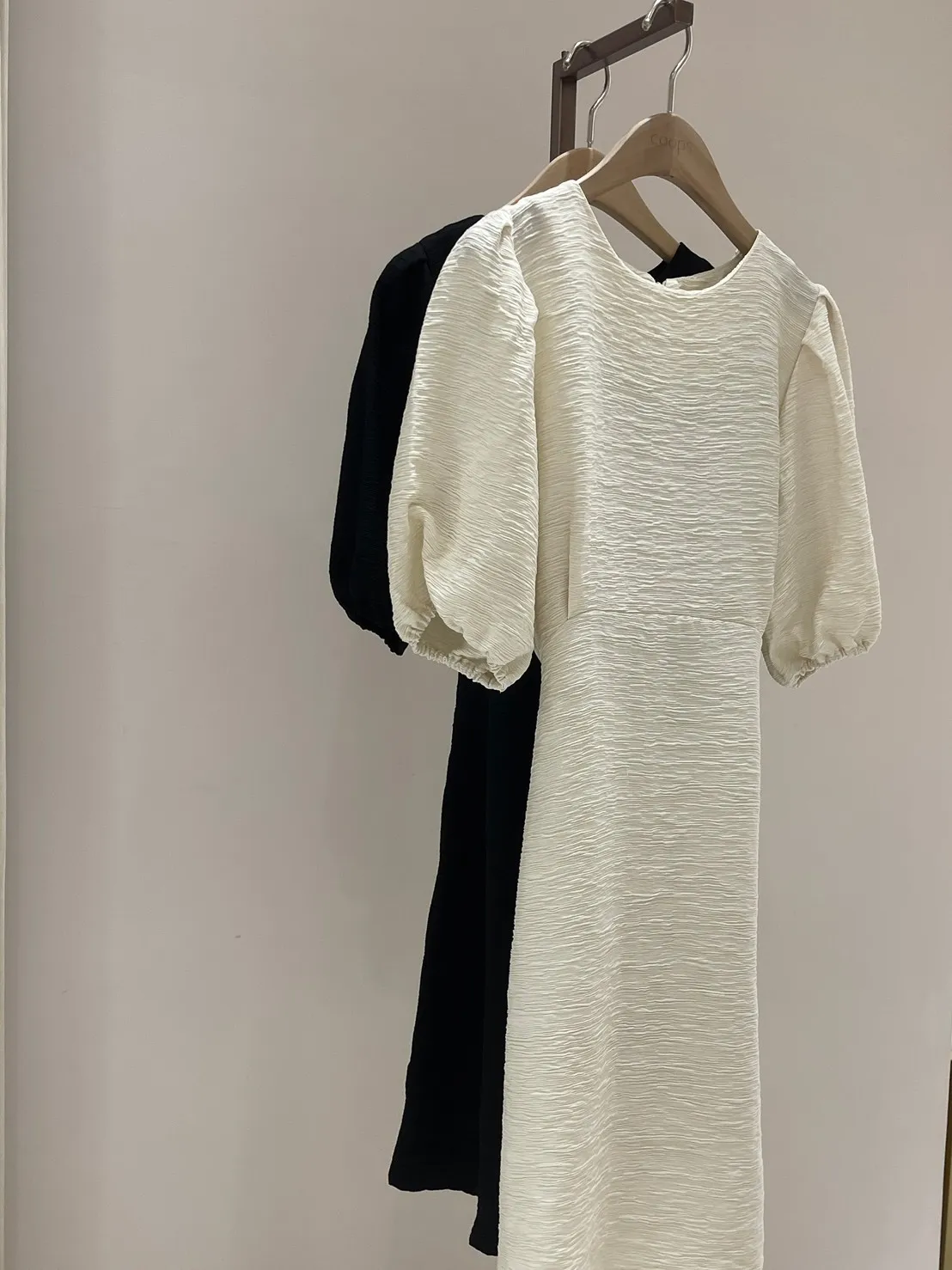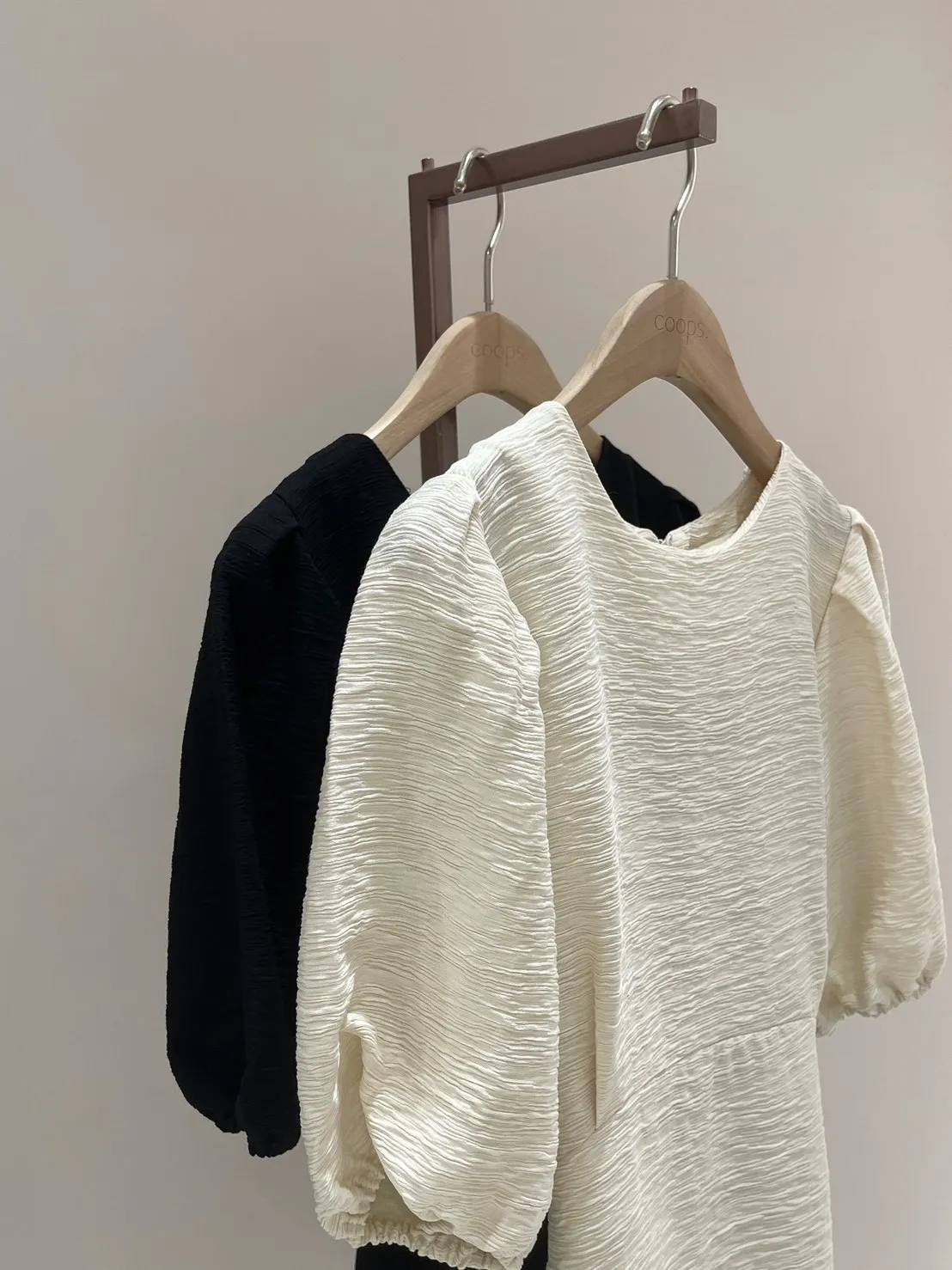 細節:紋理顯質感/小澎袖設計不浮誇/後綁帶設計