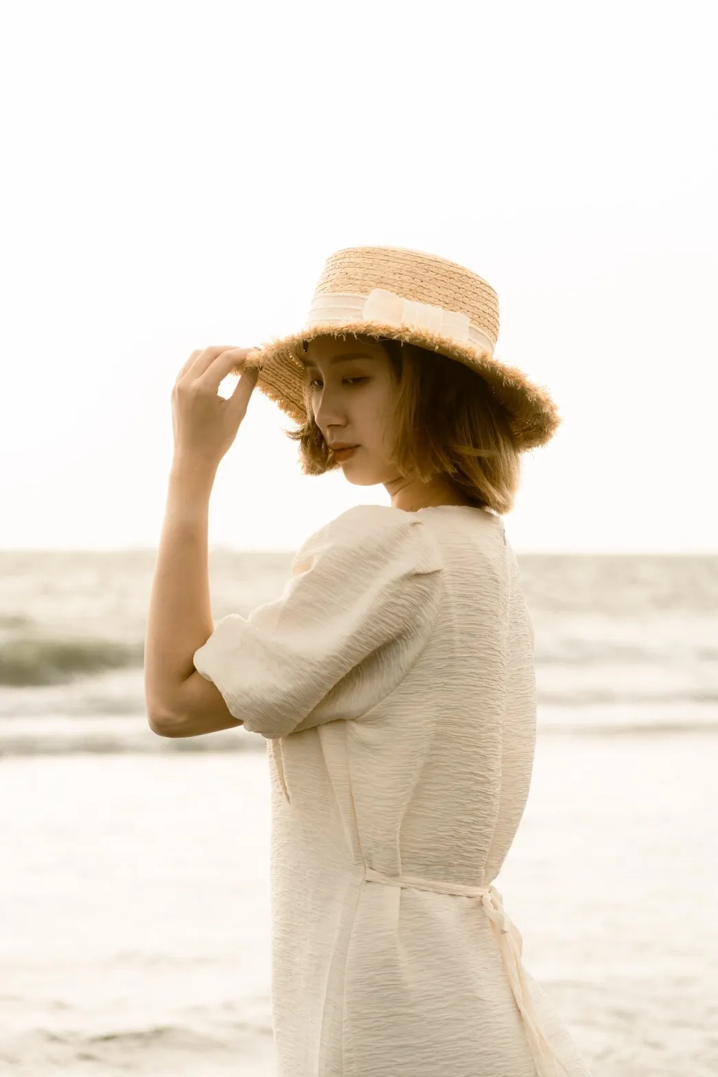 面料:竹節棉麻質感,透氣舒適帶有紋理感