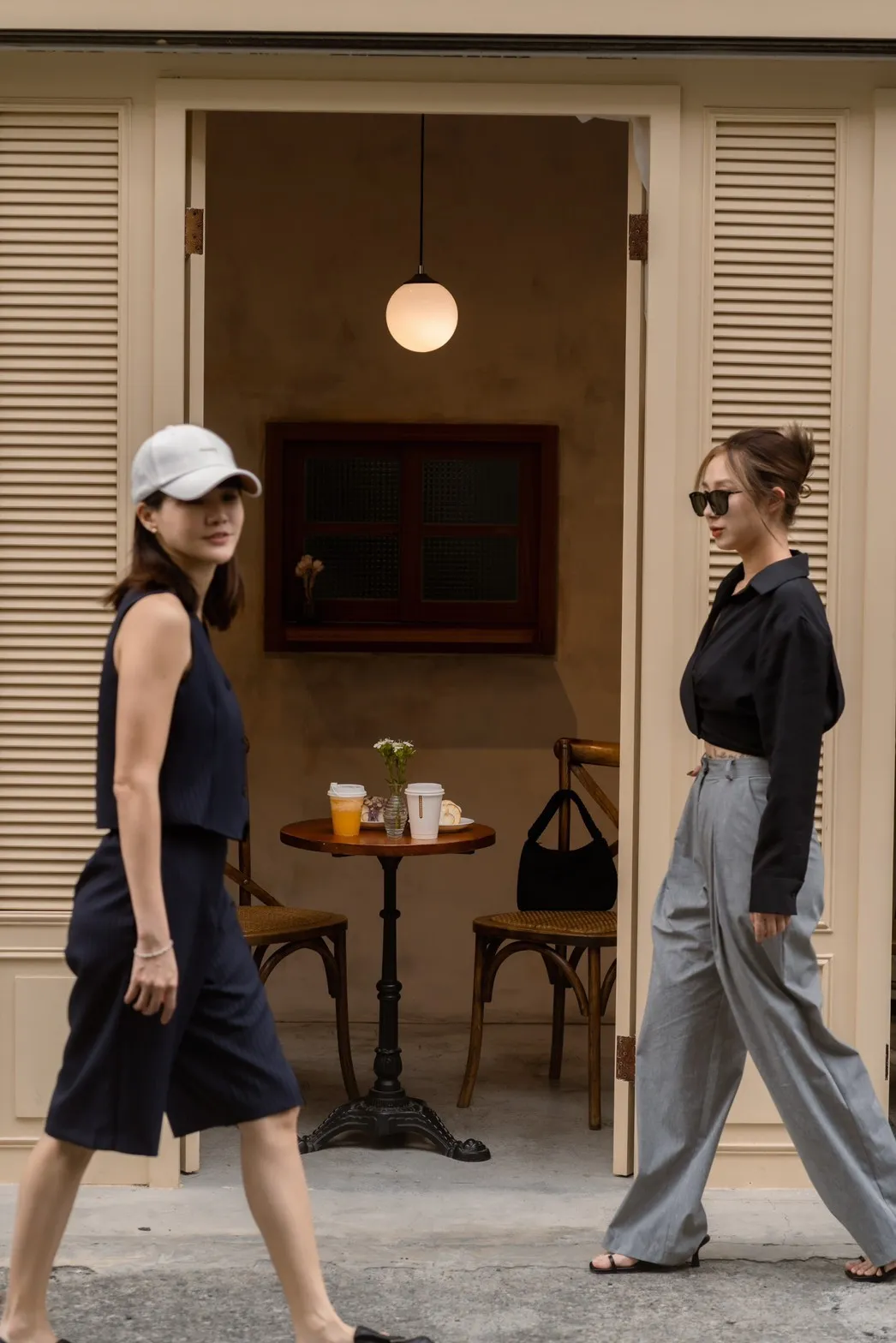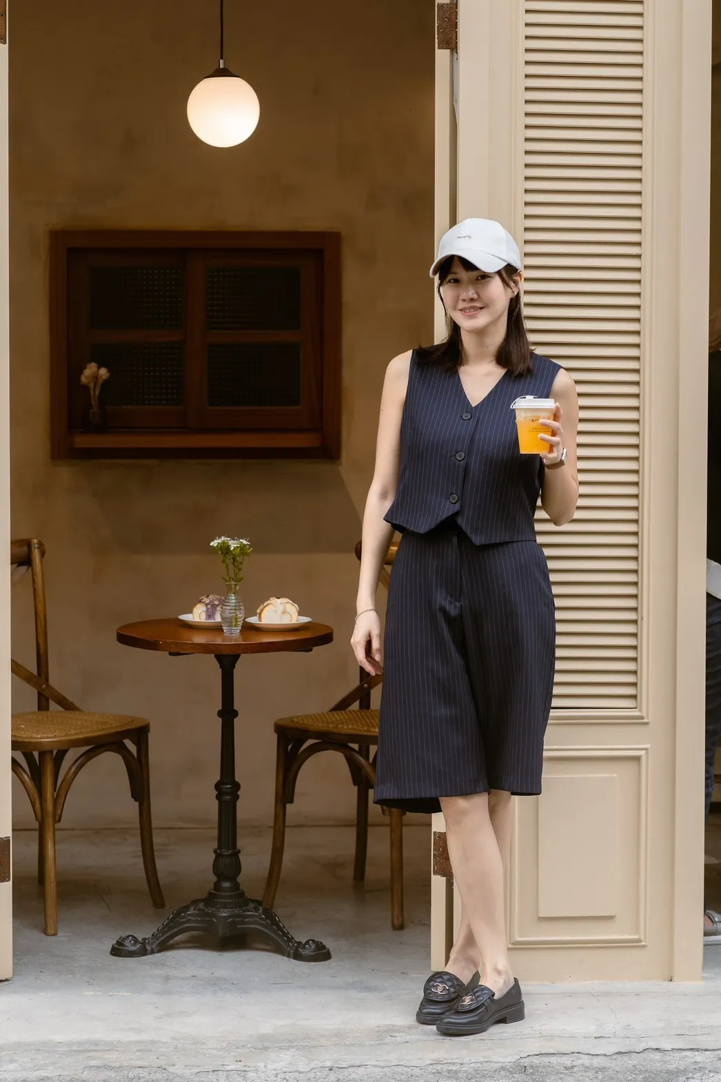 細節:直條紋質感/後鬆緊帶特別設計/167穿大約在膝蓋