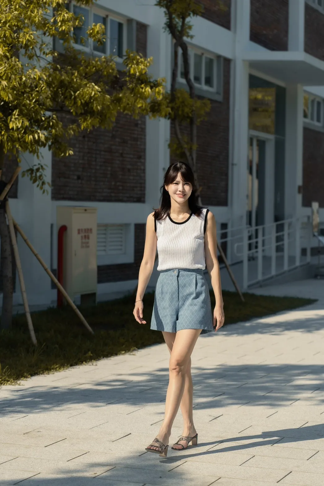 版型:高腰設計,可搭配短版單品或中長版扎進褲頭顯質感