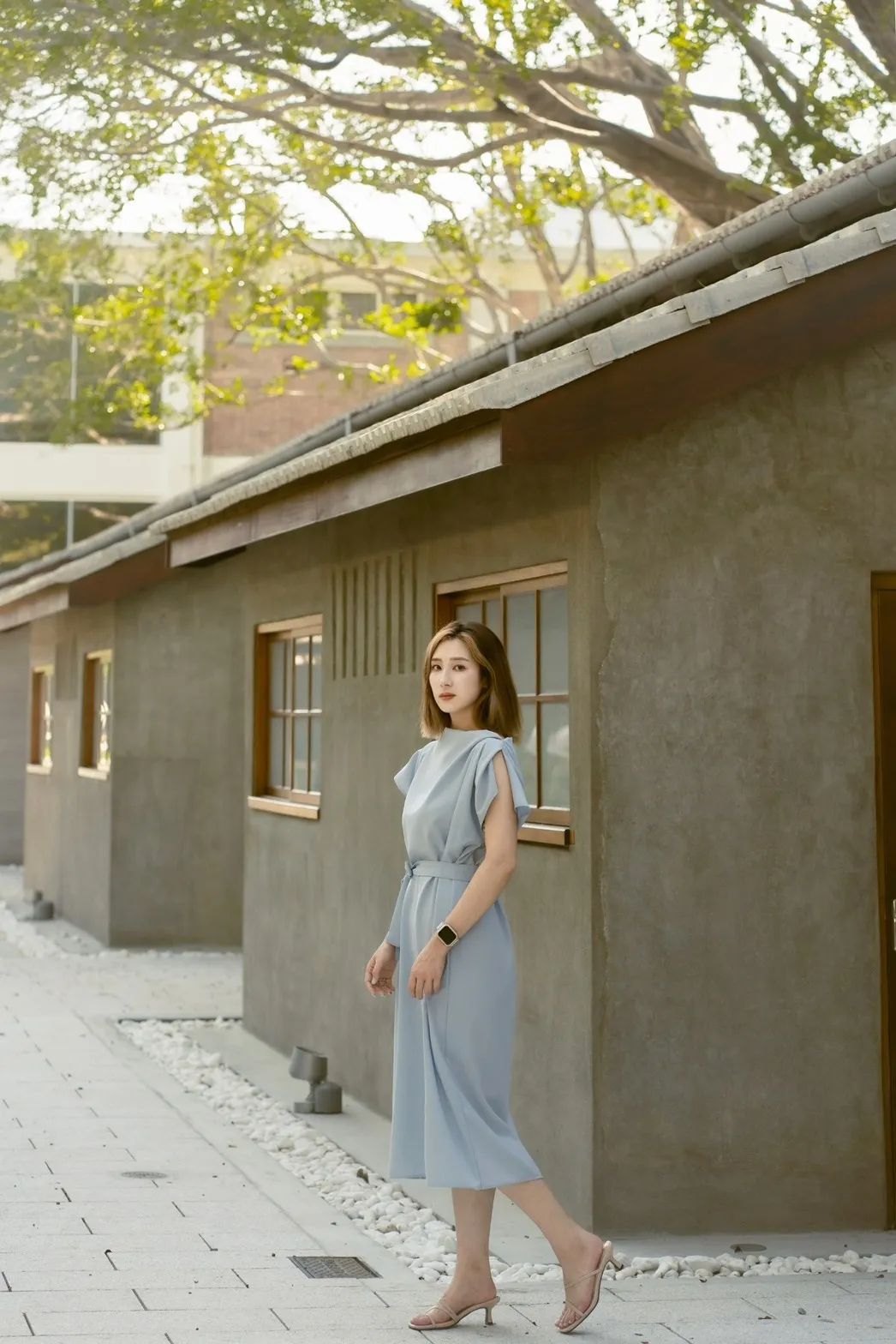 細節:亞麻透氣親膚質感/手袖開衩造型設計/修飾手臂副乳