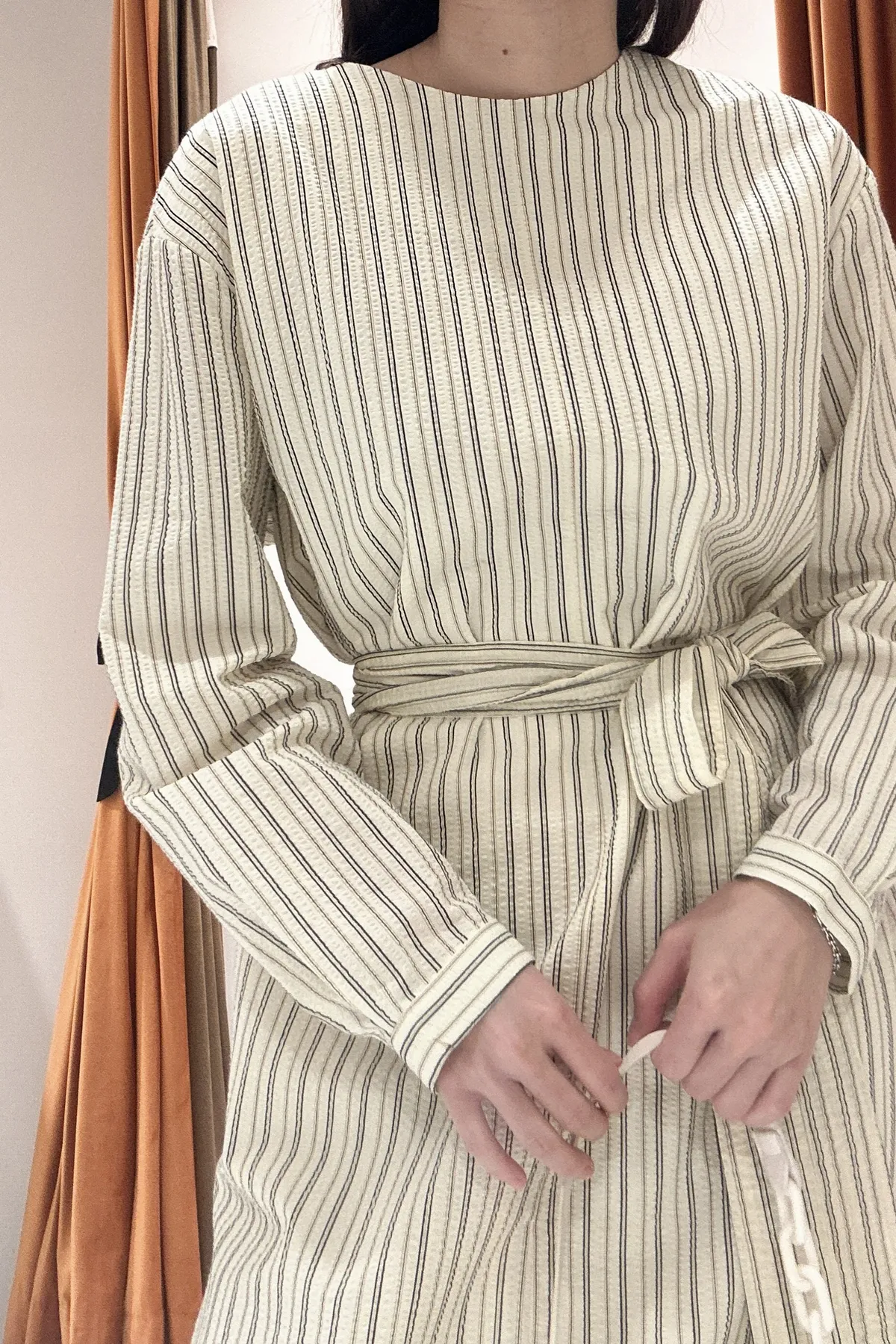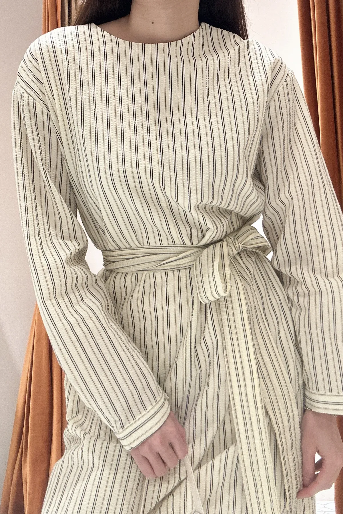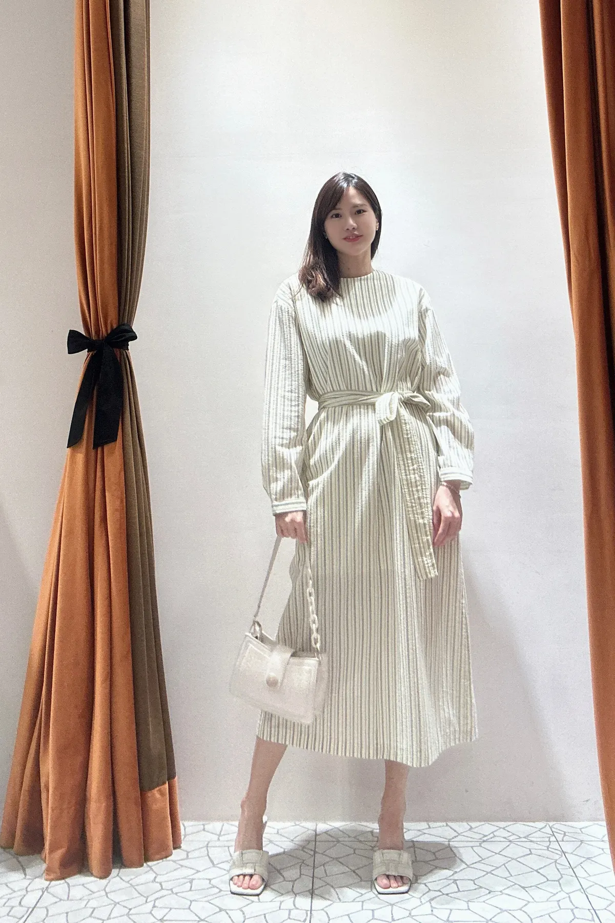 條紋綁帶長裙