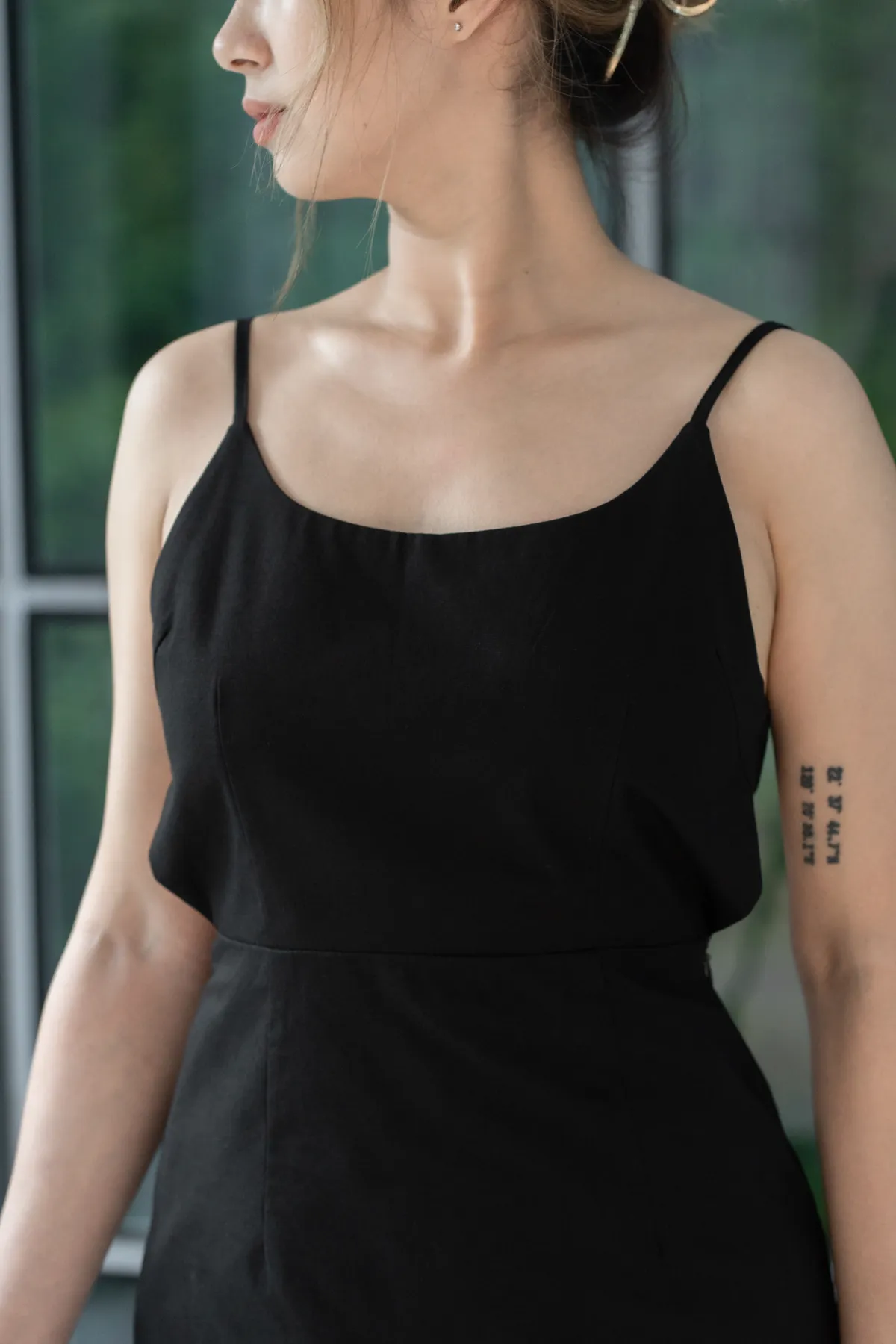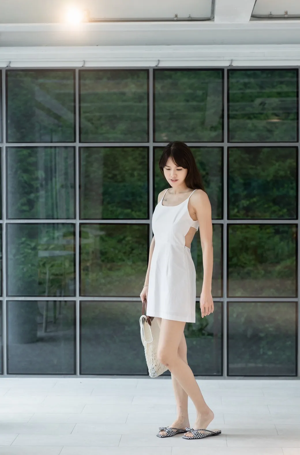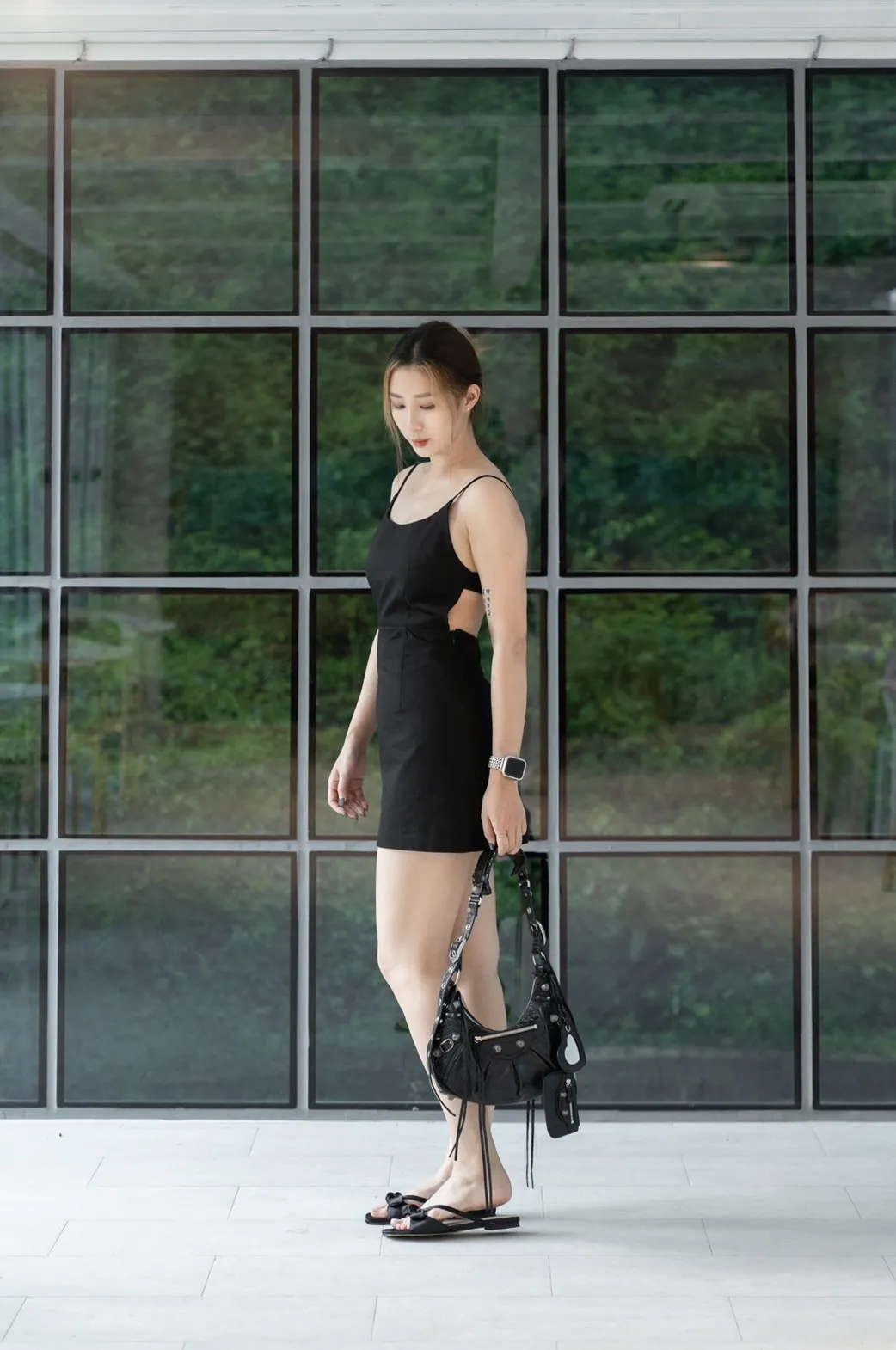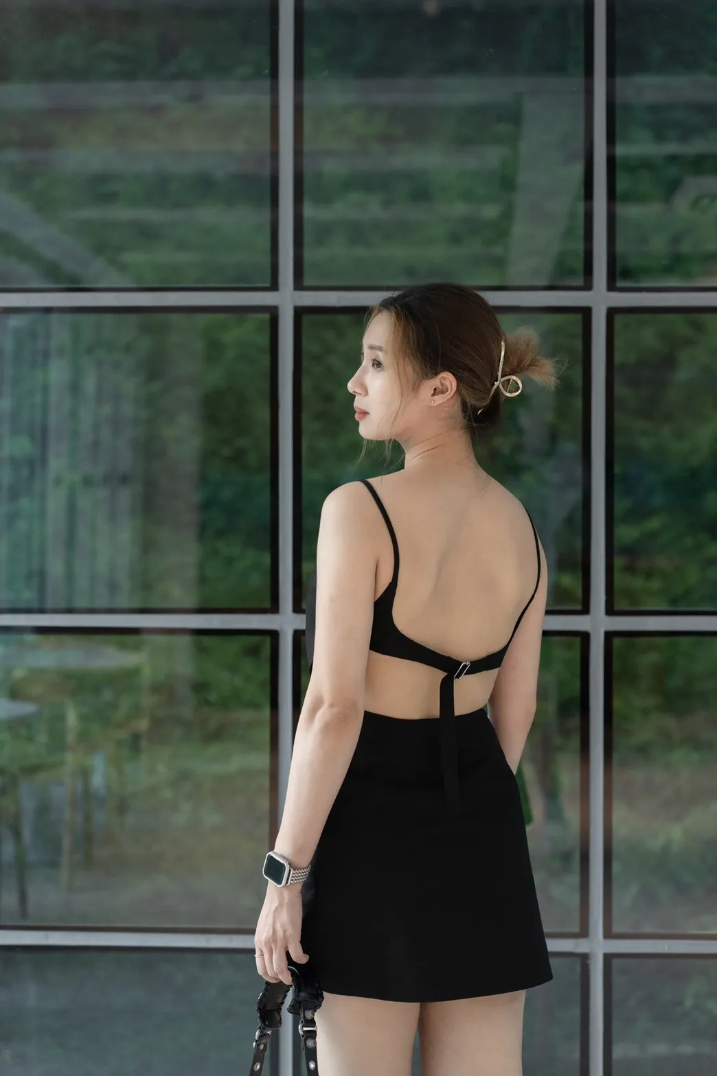 細節:後露背設計/版型布料挺版修飾身形/下擺A字顯質感