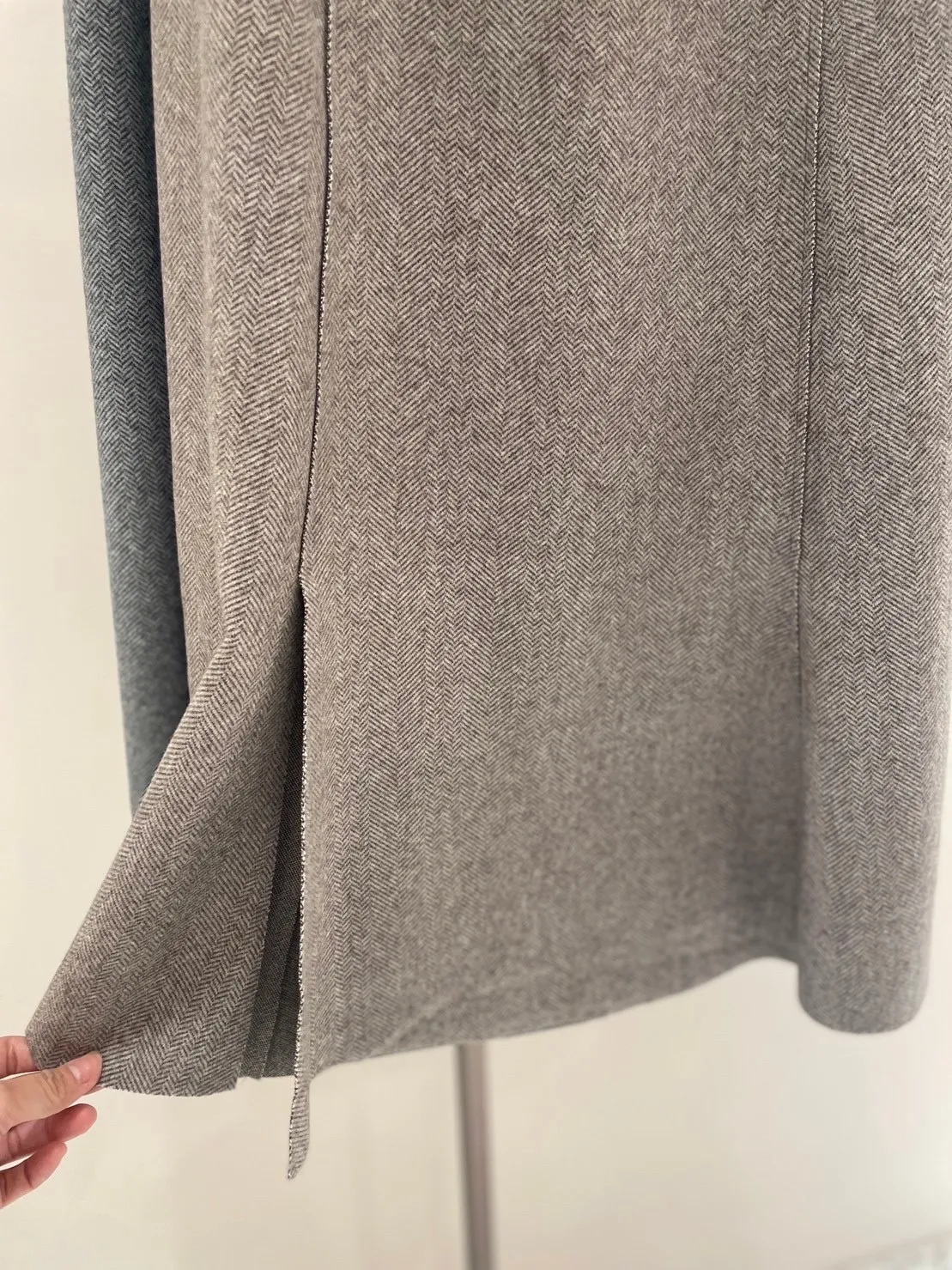 很修身的一款長裙,材質親膚但又很挺,搭配針織上衣也很好看