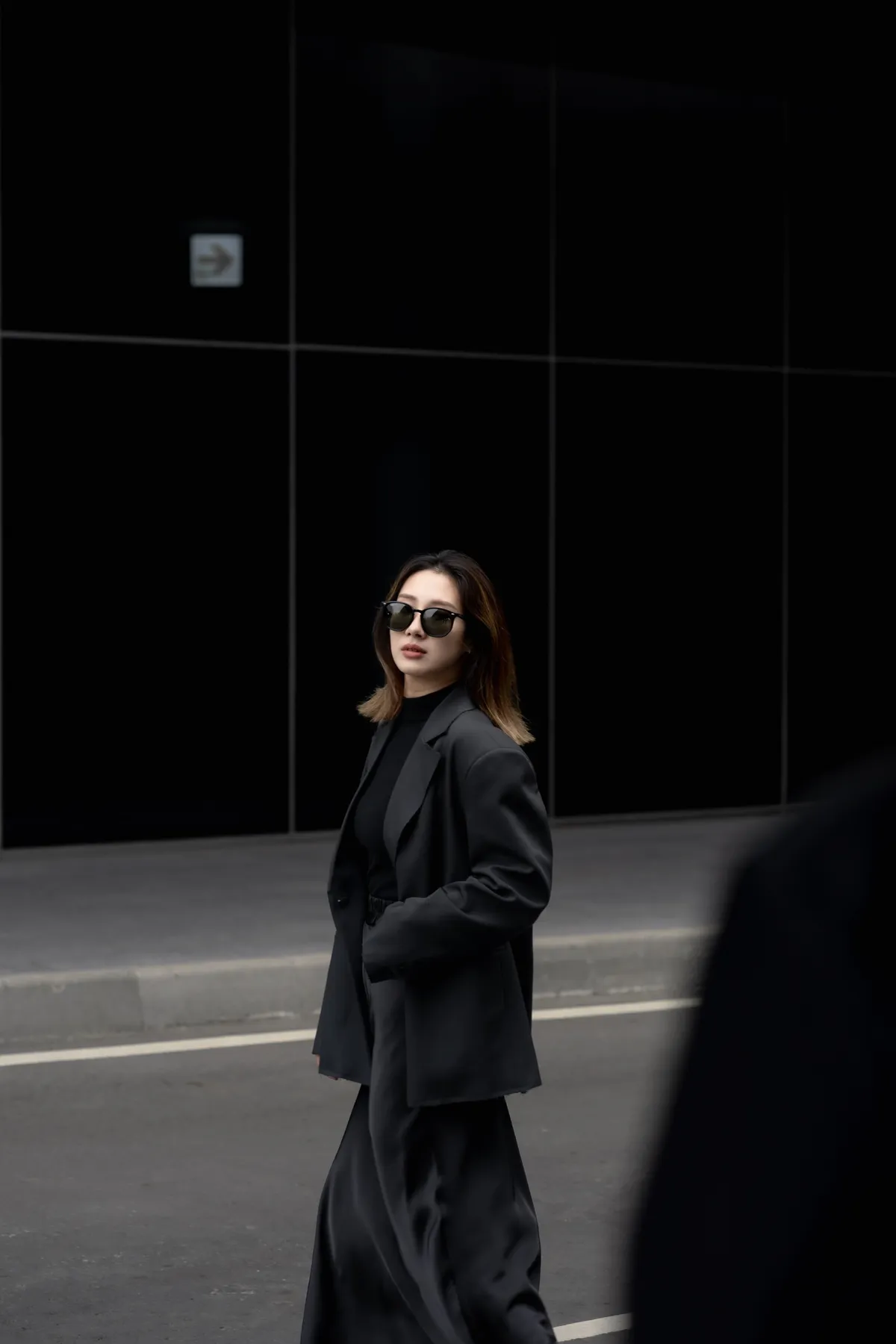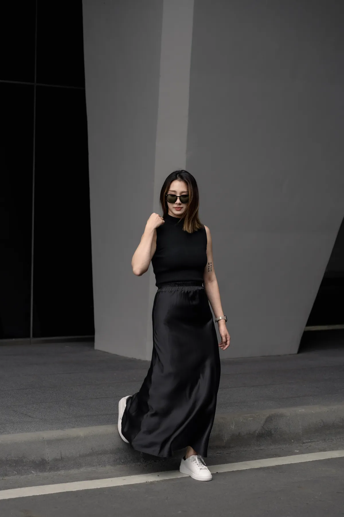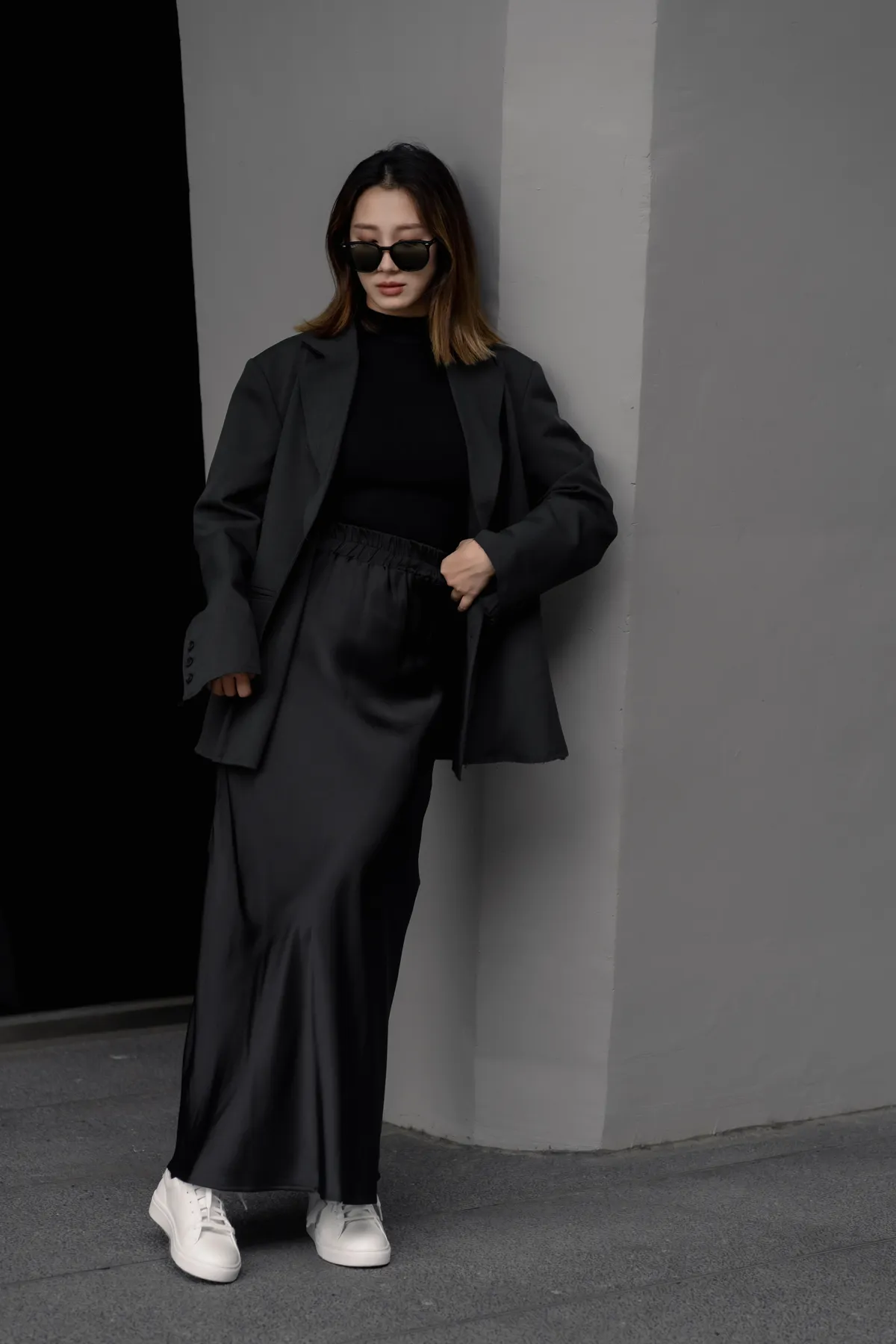 細節:光澤質感設計/版型微A字傘裙修飾身形