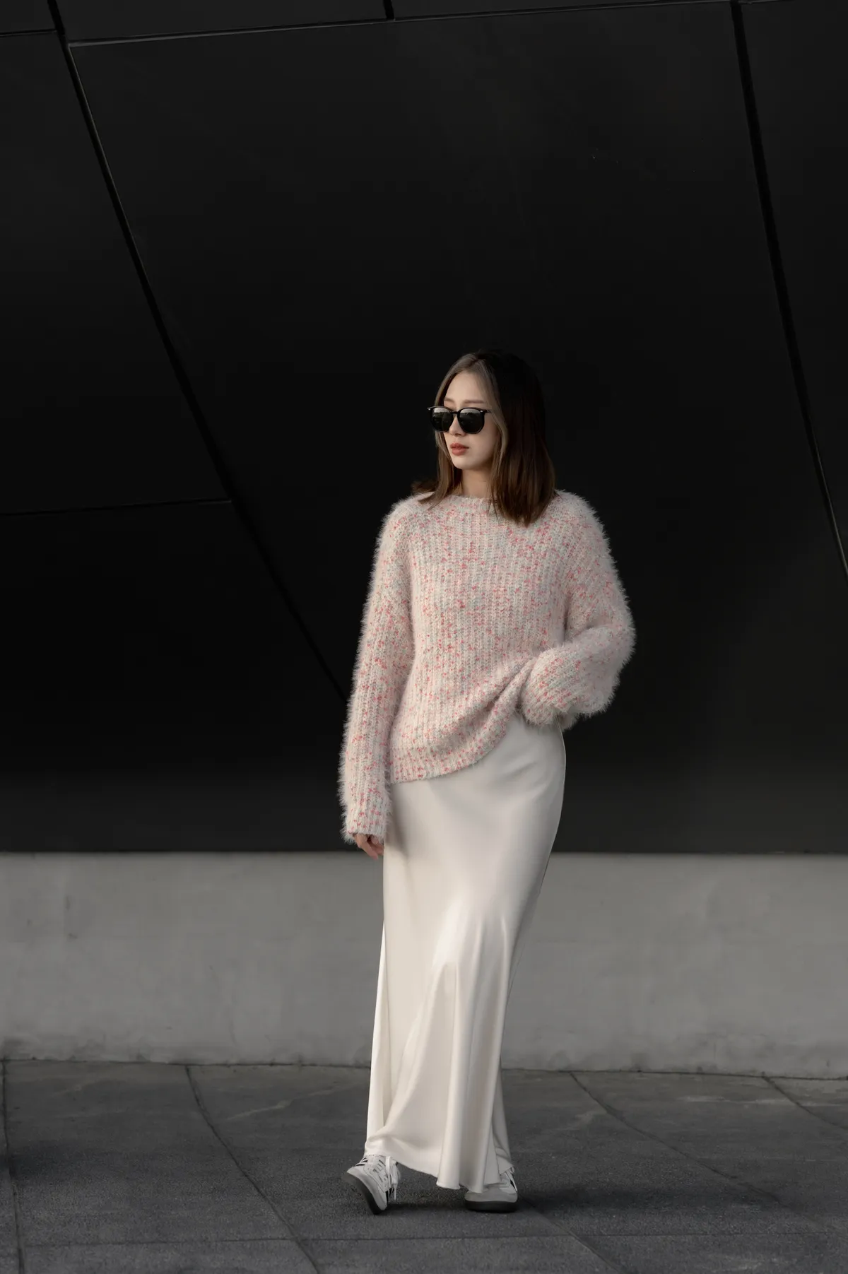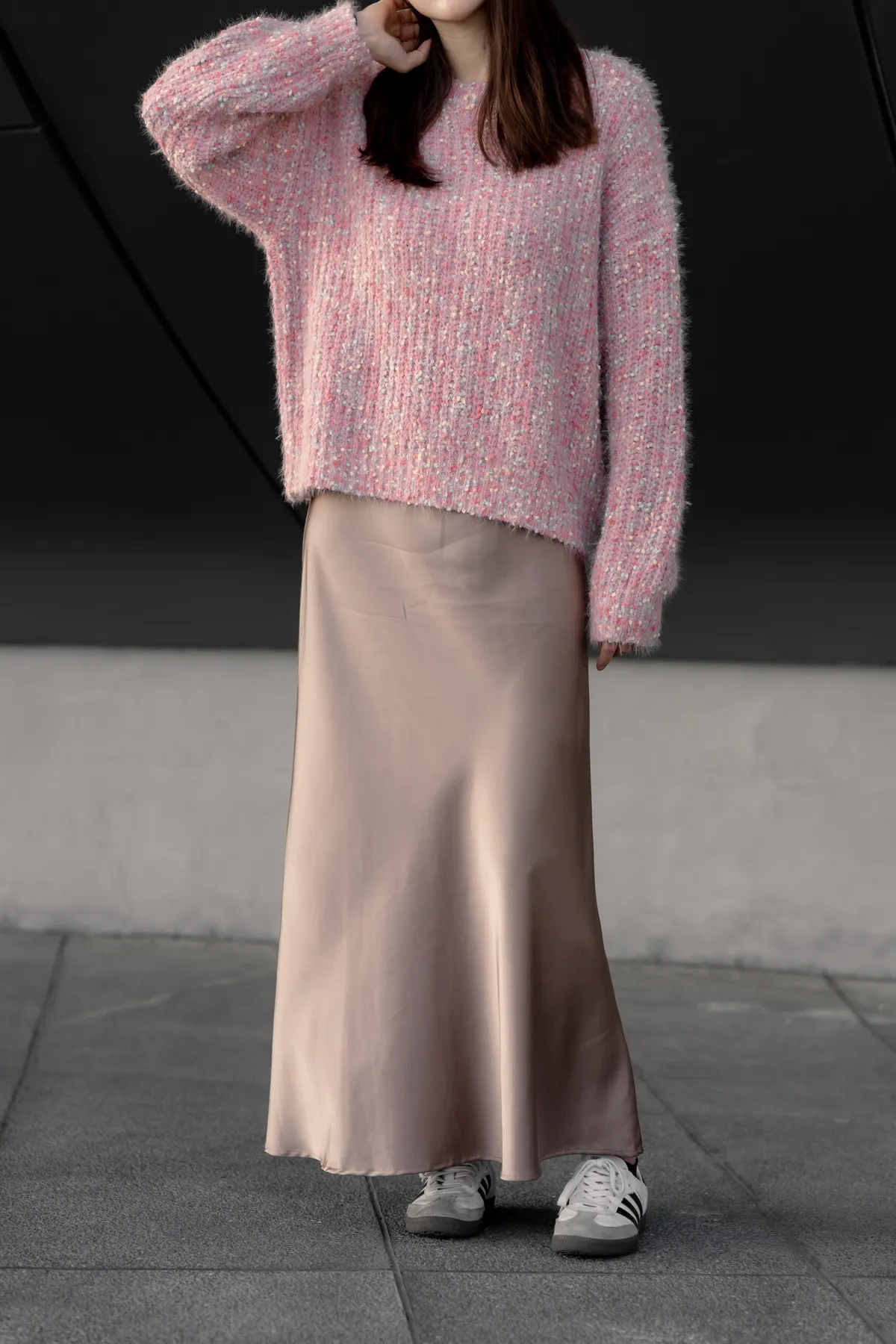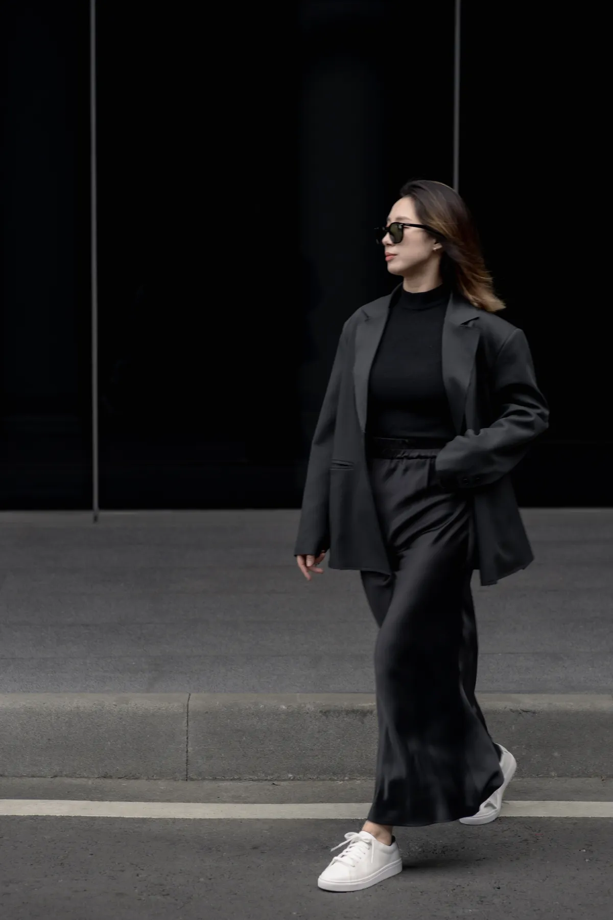 細節:光澤質感設計/版型微A字傘裙修飾身形