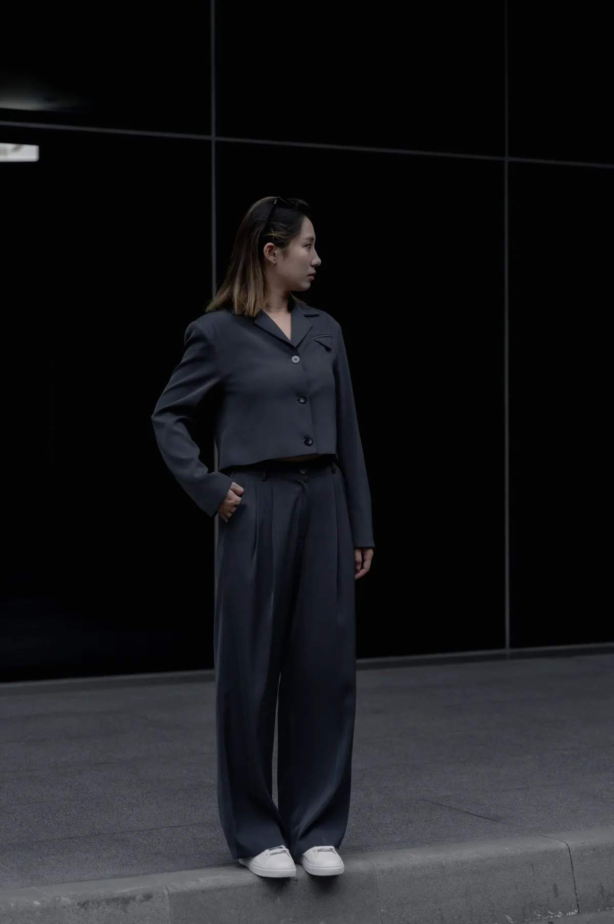 細節:西裝輕薄材質/前打折設計