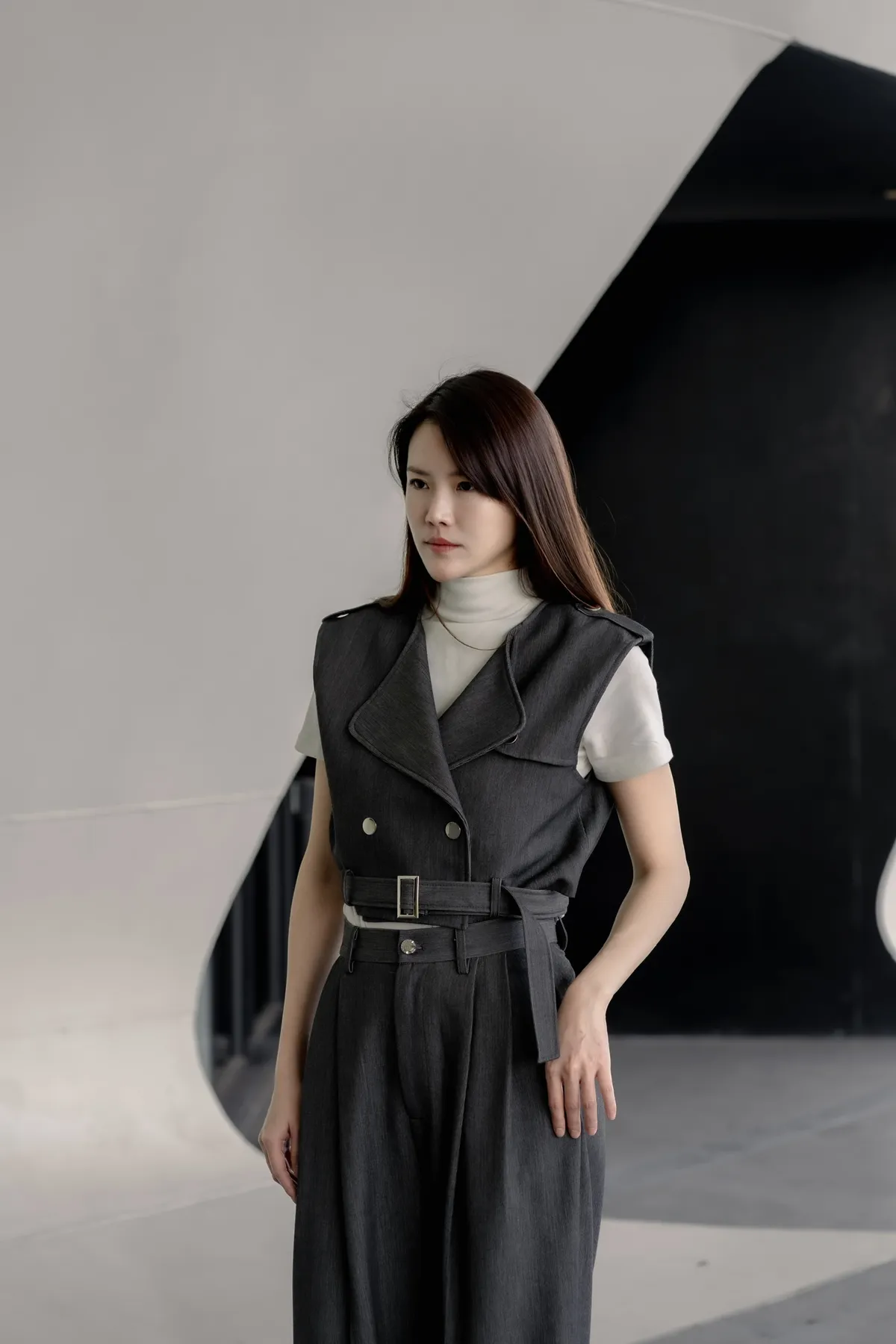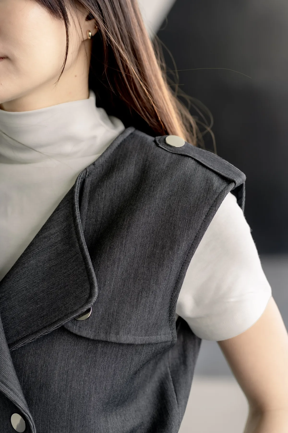 | 細節 | 腰帶增添帥氣感/高級選色/腹部和肩膀都做有鈕扣設計 |